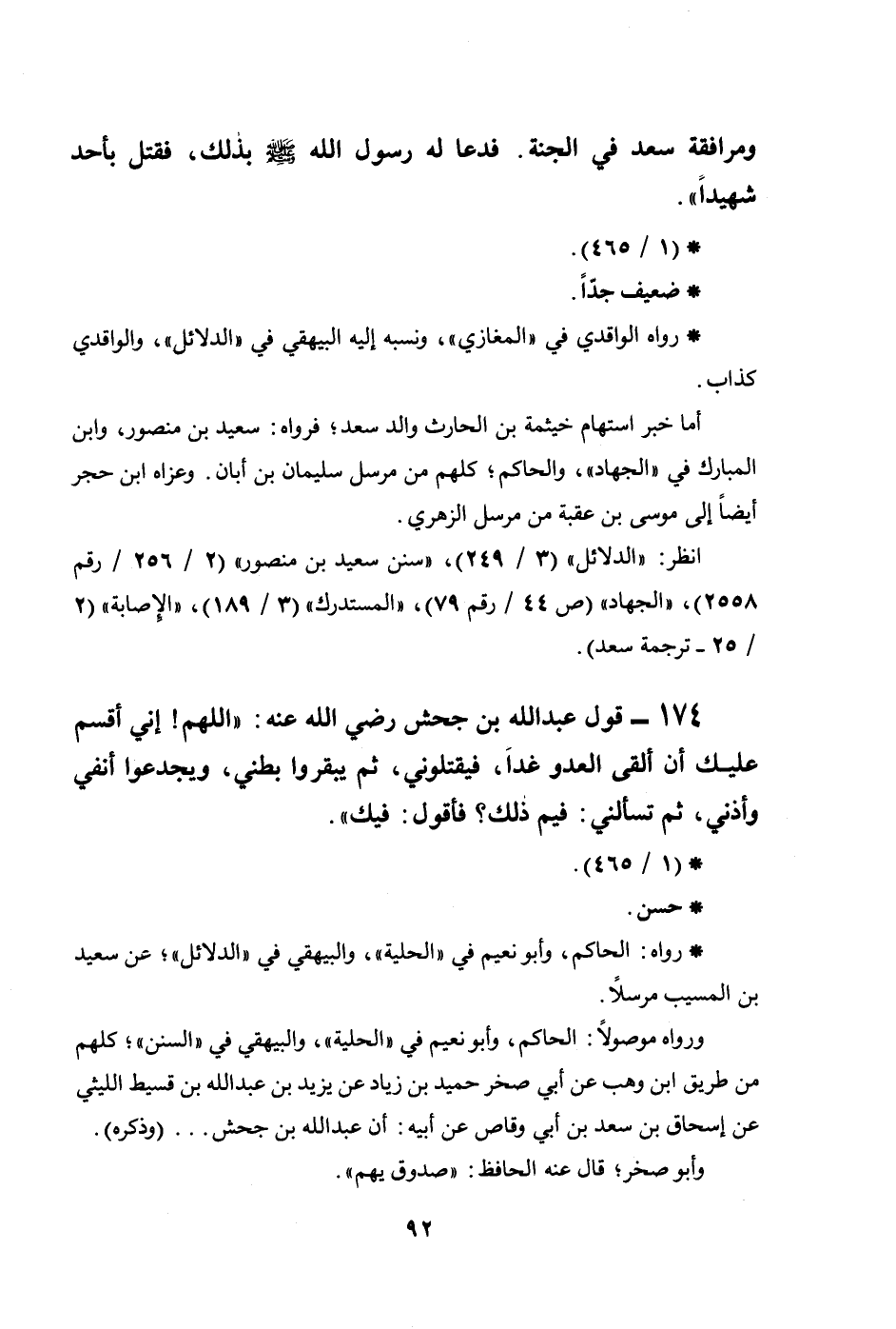 انظر: ((الدلائل)) (3/249) ، ((سنن سعيد بن منصور)) (2/256/رقم2558) ، ((الجهاد)) (ص44/رقم79) ، ((المستدرك)) (3/189) ، ((الإصابة)) (2/25 - ترجمة سعد) .