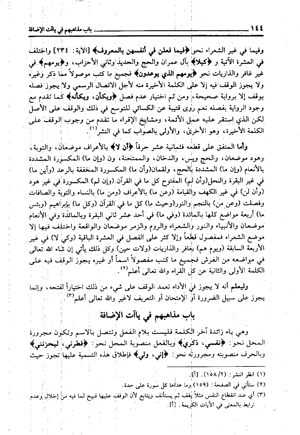 3 أي: عند انقطاع النفس مثلا يقف ثم يستأنف ويتابع؛ لأن الوقف عليها قبيح لما فيه من إخلال وعدم ترابط بالمعنى في الآيات الكريمة. [أ] .