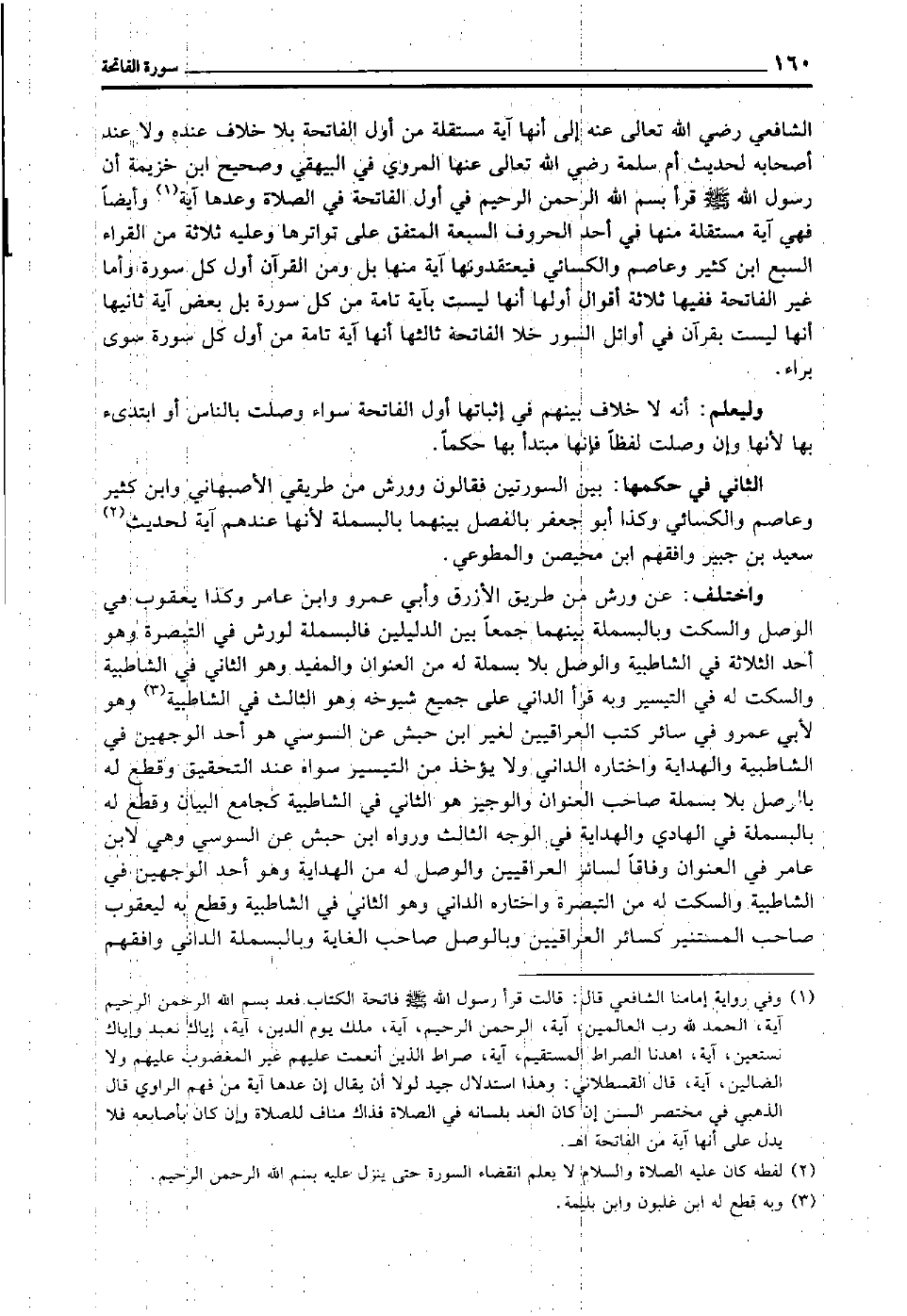 1 وفي رواية إمامنا الشافعي قال: قالت: قرأ رسول الله -صلى الله عليه وسلم- فاتحة الكتاب فعد بسم الله الرحمن الرحيم آية، الحمد لله رب العالمين، آية، الرحمن الرحيم، آية، ملك يوم الدين، آيه، إياك نعبد وإياك نستعين، آية، اهدنا الصراط المستقيم، آية صراط الذين أنعمت عليهم غير المغضوب عليهم ولا الضالين، آية، قال القسطلاني: وهذا استدلال جيد لولا أن يقال إن عدها آية من فهم الراوي, قال الذهبي في مختصر السنن: إن كان العد بلسانه في الصلاة فذاك مناف للصلاة, وإن كان بأصابعه فلا يدل على أنها آية من الفاتحة ا. هـ.