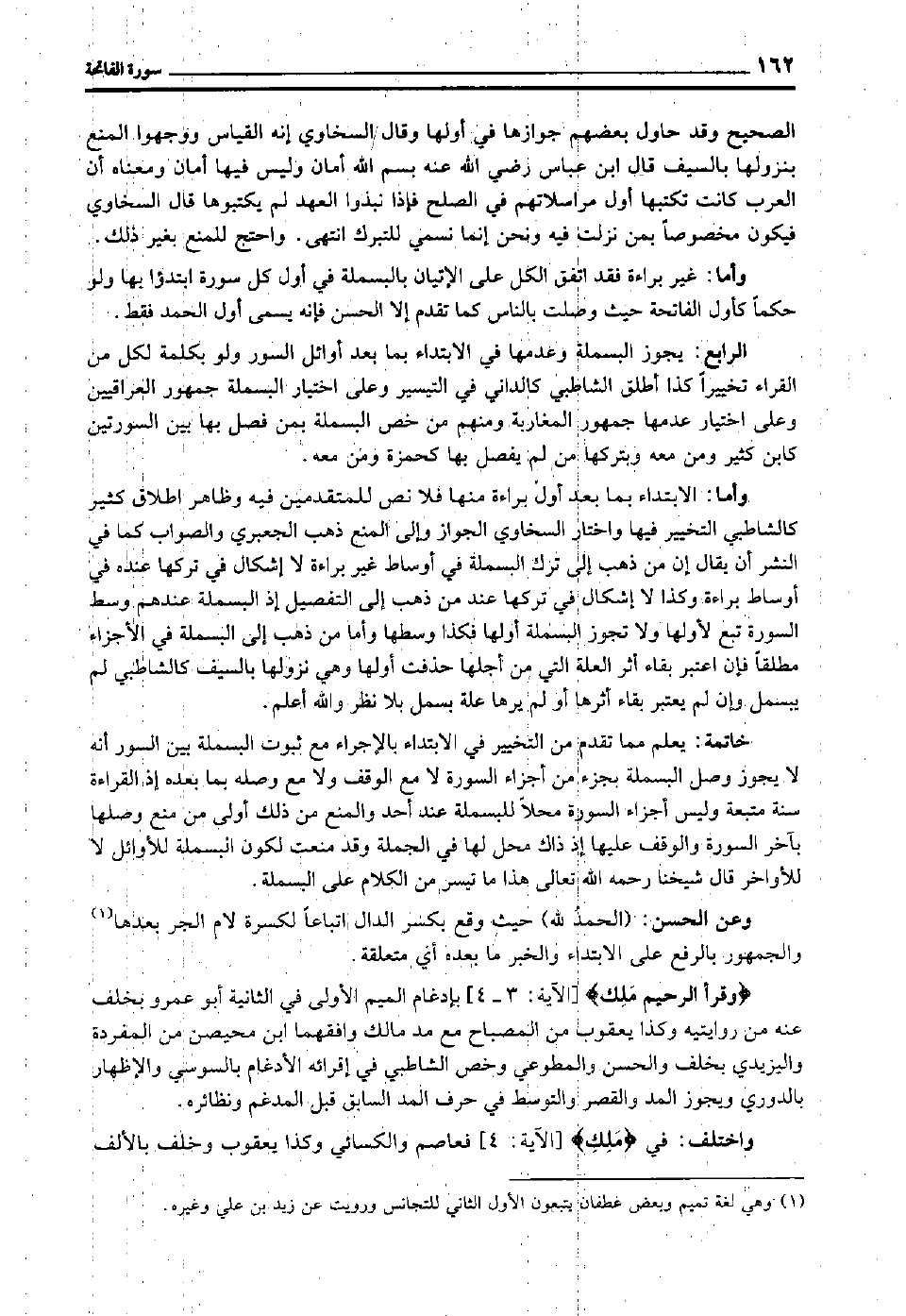 وأما: غير براءة فقد اتفق الكل على الإتيان بالبسملة في أول كل سورة, ابتدءوا بها ولو حكما كأول الفاتحة, حيث وصلت بالناس كما تقدم إلا الحسن فإنه يسمى أول الحمد فقط.