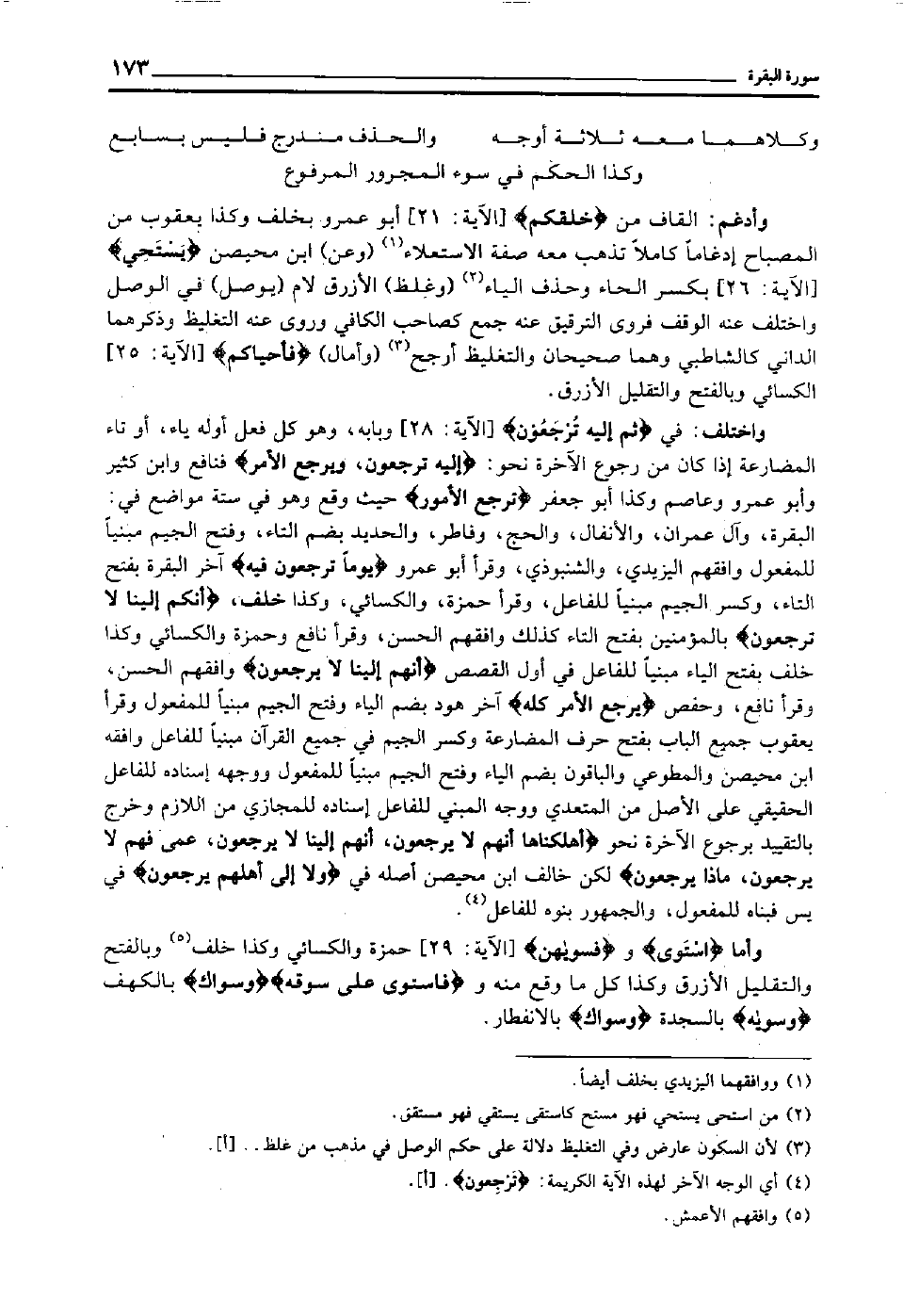 وأدغم: القاف من "خلقكم" [الآية: 21] أبو عمرو بخلف وكذا يعقوب من المصباح إدغاما كاملا تذهب معه صفة الاستعلاء1, "وعن" ابن محيصن "يستحي" [الآية: 26] بكسر الحاء وحذف الياء2 "وغلظ" الأزرق لام "يوصل" في الوصل واختلف عنه الوقف فروى الترقيق عنه جمع كصاحب الكافي وروى عنه التغليظ, وذكرهما الداني كالشاطبي وهما صحيحان والتغليظ أرجح3 وأمال "فأحياكم" [الآية: 25] الكسائي وبالفتح والتقليل الأزرق.