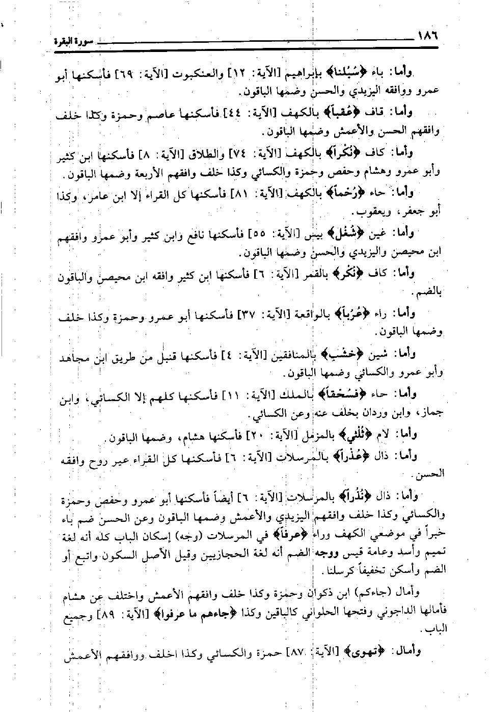وأما حاء "رحما" [بالكهف الآية: 81] فأسكنها كل القراء إلا ابن عامر, وكذا أبو جعفر ويعقوب.