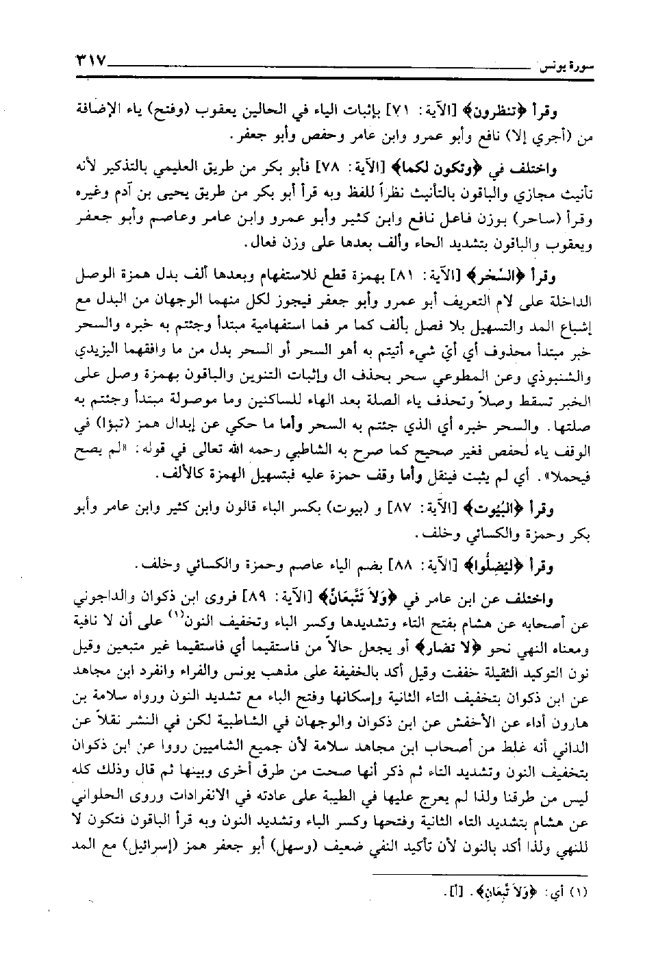 وقرأ "تُنْظِرُون" [الآية: 71] بإثبات الياء في الحالين يعقوب "وفتح" ياء الإضافة من "أجري إلا" نافع وأبو عمرو وابن عامر وحفص وأبو جعفر.