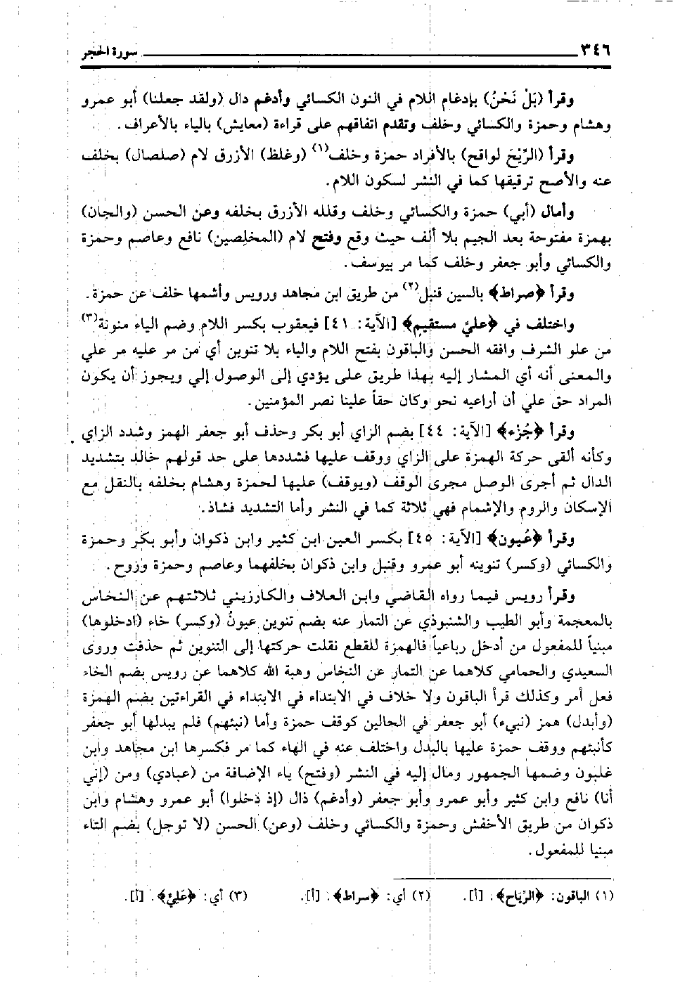 وقرأ "الريح لواقح" بالأفراد حمزة وخلف1 "وغلظ" الأزرق لام "صلصال" بخلف عنه, والأصح ترقيقها كما في النشر لسكون اللام.