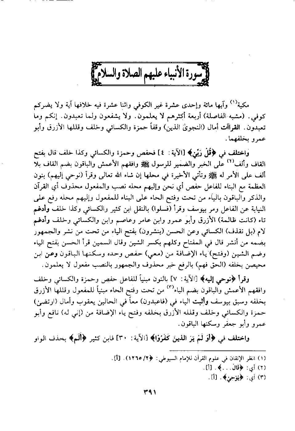 مكية1 وآيها مائة وإحدى عشرة غير الكوفي واثنا عشرة فيه خلافها آية ولا يضركم كوفي "مشبه الفاصلة" أربعة: أكثرهم لا يعلمون, ولا يشفعون ولما تعبدون, إنكم وما تعبدون, القراءات أمال "النجوى الذين" وقفا حمزة والكسائي وخلف, وقللها الأزرق وأبو عمرو بخلفهما.