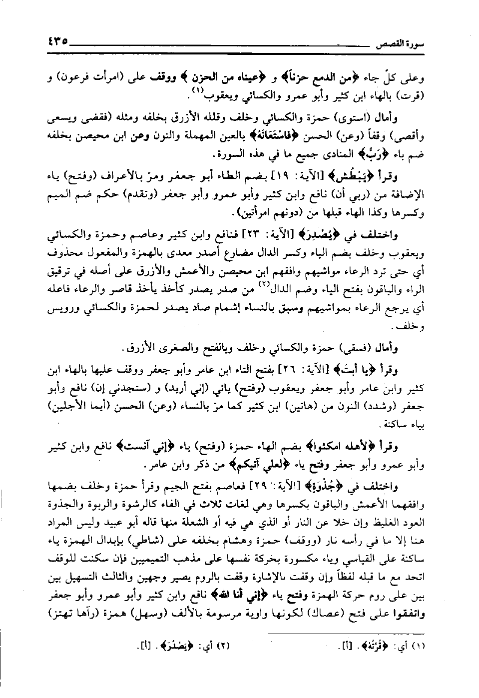 وعلى كل جاء "مِنَ الدَّمْعِ حَزَنًا" و"عَيْنَاهُ مِنَ الْحُزْن" ووقف على "امرأت فرعون" و"قرت" بالهاء ابن كثير وأبو عمرو والكسائي ويعقوب1.