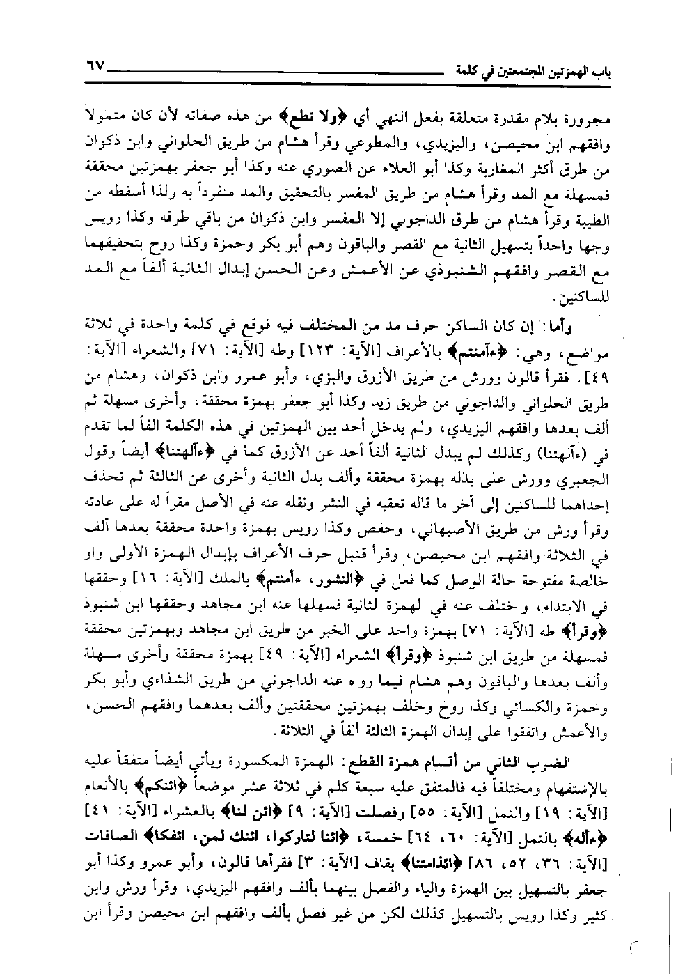 مجرورة بلام مقدرة متعلقة بفعل النهي أي: "وَلا تُطِع" من هذه صفاته؛ لأن كان متمولا وافقهم ابن محيصن, واليزيدي والمطوعي, وقرأ هشام من طريق الحلواني وابن ذكوان من طرق أكثر المغاربة, وكذا أبو العلاء عن الصوري عنه, وكذا أبو جعفر بهمزتين محققة فمسهلة مع المد, وقرأ هشام من طريق المفسر بالتحقيق والمد منفردا به, ولذا أسقطه من الطيبة وقرأ هشام من طرق الداجوني إلا المفسر وابن ذكوان من باقي طرقه, وكذا رويس وجها واحدا بتسهيل الثانية مع القصر, والباقون وهم أبو بكر وحمزة وكذا روح بتحقيقهما مع القصر, وافقهم الشنبوذي عن الأعمش, وعن الحسن إبدال الثانية ألفا مع المد للساكنين.
