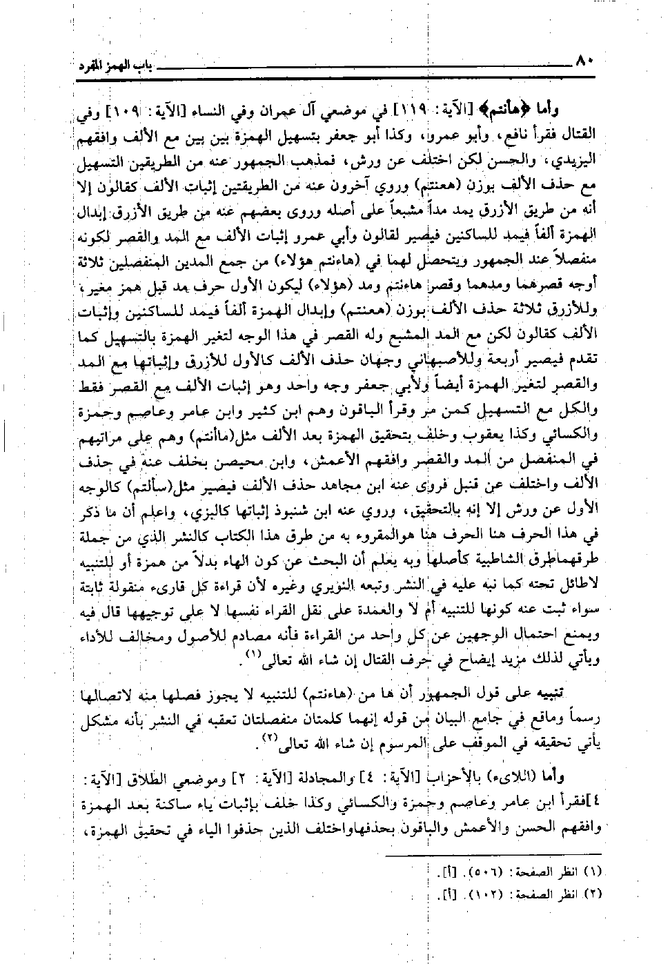 تنبيه على قول الجمهور أن ها من "هاءنتم" للتنبيه لا يجوز فصلها منه لاتصالها رسما وما وقع في جامع البيان من قوله: إنهما كلمتان منفصلتان تعقبه في النشر بأنه مشكل يأتي تحقيقه في الموقف على المرسوم إن شاء الله تعالى2.
