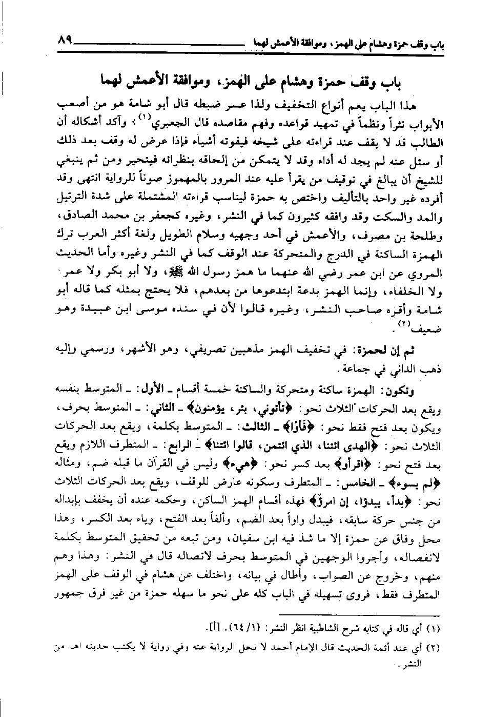 ثم إن لحمزة: في تخفيف الهمز مذهبين: تصريفي وهو الأشهر ورسمي وإليه ذهب الداني في جماعة.