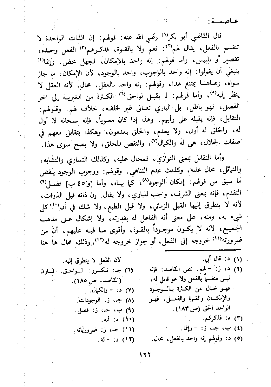 (¬5) د: وقولهم إنه واحد بالفعل، محال، لأن الفعل لا يتطرق إليه.