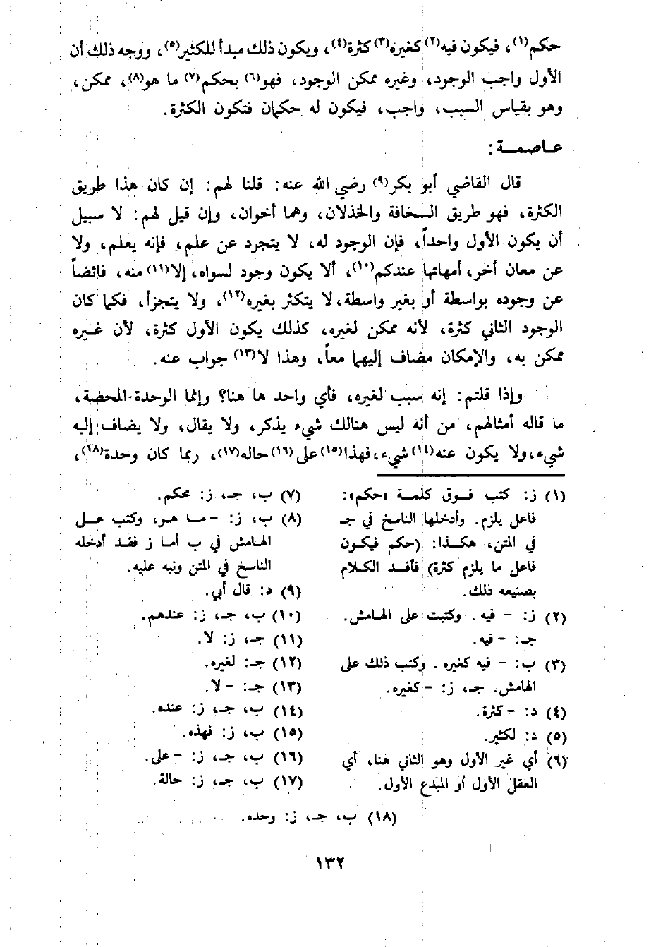 (¬1) ز: كتب فوق كلمة "حكم": فاعل يلزم. وأدخلها الناسخ في ج في المتن، هكذا: (حكم فيكون فاعل ما يلزم كثرة) فأفسد الكلام بصنيعه ذلك.