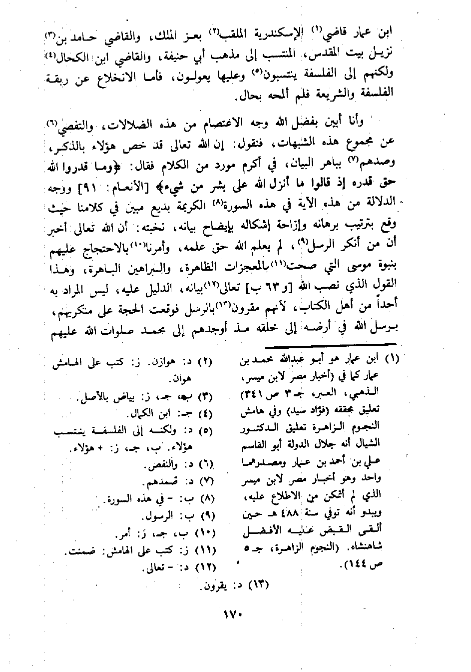 ابن عمار قاضي (¬1) الإسكندرية الملقب (¬2) بعز الملك، والقاضي حامد بن (¬3) نزيل بيت المقدس، المنتسب إلى مذهب أبي حنيفة، والقاضي ابن الكحال (¬4) ولكنهم إلى الفلسفة ينتسبون (¬5) وعليها يعولون، فأما الانخلاع عن ربقة الفلسفة والشريعة فلم ألمحه بحال.