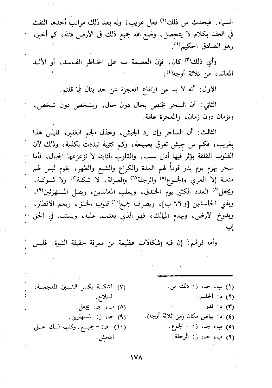الثالث: أن الساحر وإن رد الجيش، وخذل الجم الغفير، فليس هذا بغريب، فكم من جيش تفرق بصيحة، وكم كتيبة تبددت بكذبة، وذلك لأن القلوب القلقة يؤثر فيها أدق سبب، والقلوب الثابتة لا تزعزعها الجبال، فأما سحر يهزم يوم بدر قوما لهم العدة والكراع والشبع والظهر، بقوم ليس لهم منعة إلا العري والجوع (¬5) والرجلة (¬6) والعزلة، لا شكة (¬7) ولا شوكة، ويجفل (¬8) العدد الكثير يوم الخندق، ويغلب المعاندين، ويقتل المستهزئين (¬9)، ويفني الحاسدين [و 66 ب]، ويصرف جميع (¬10) قلوب الخلق، ويعم الأقطار، ويدوخ الأرض، ويهدم المالك، فهو الذي يعتمد عليه، ويستند في الحق إليه.