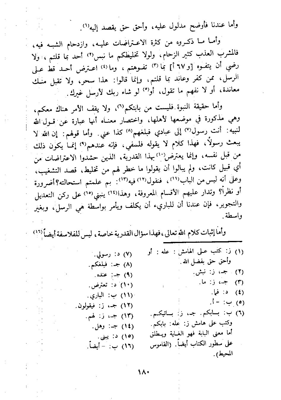 وأما إثبات كلام الله تعالى، فهذا سؤال القدرية خاصة، ليس للفلاسفة أيضا (¬16)