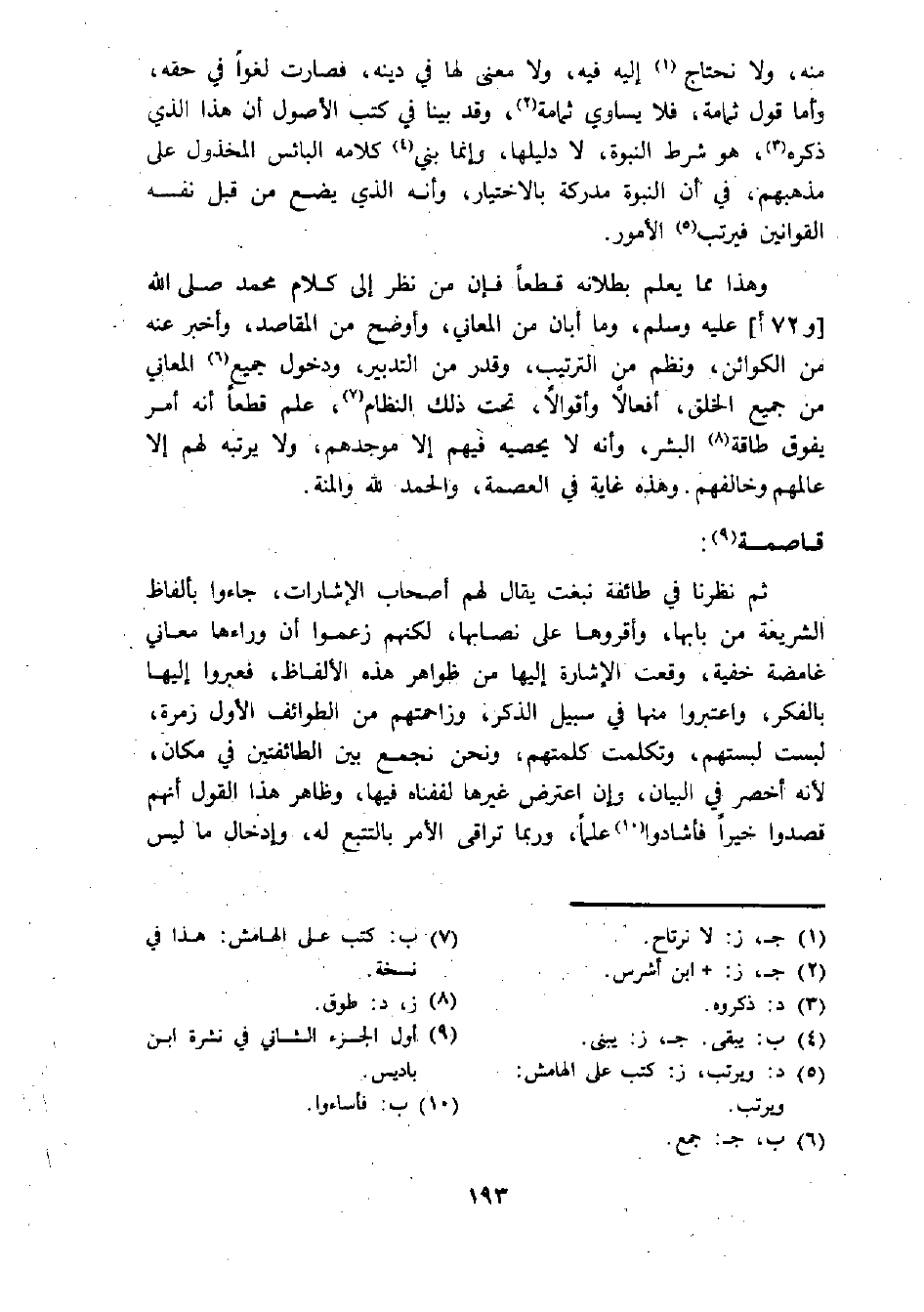 منه، ولا نحتاج (¬1) إليه فيه، ولا معنى لها في دينه، فصارت لغوا في حقه، وأما قول ثمامة، فلا يساوي ثمامة (¬2)، وقد بينا في كتب الأصول أن هذا الذي ذكره (¬3)، هو شرط النبوة، لا دليلها، وإنما بني (¬4) كلامه البائس المخذول على مذهبهم، في أن النبوة مدركة بالاختيار، وأنه الذي يضع من قبل نفسه القوانين فيرتب (¬5) الأمور.