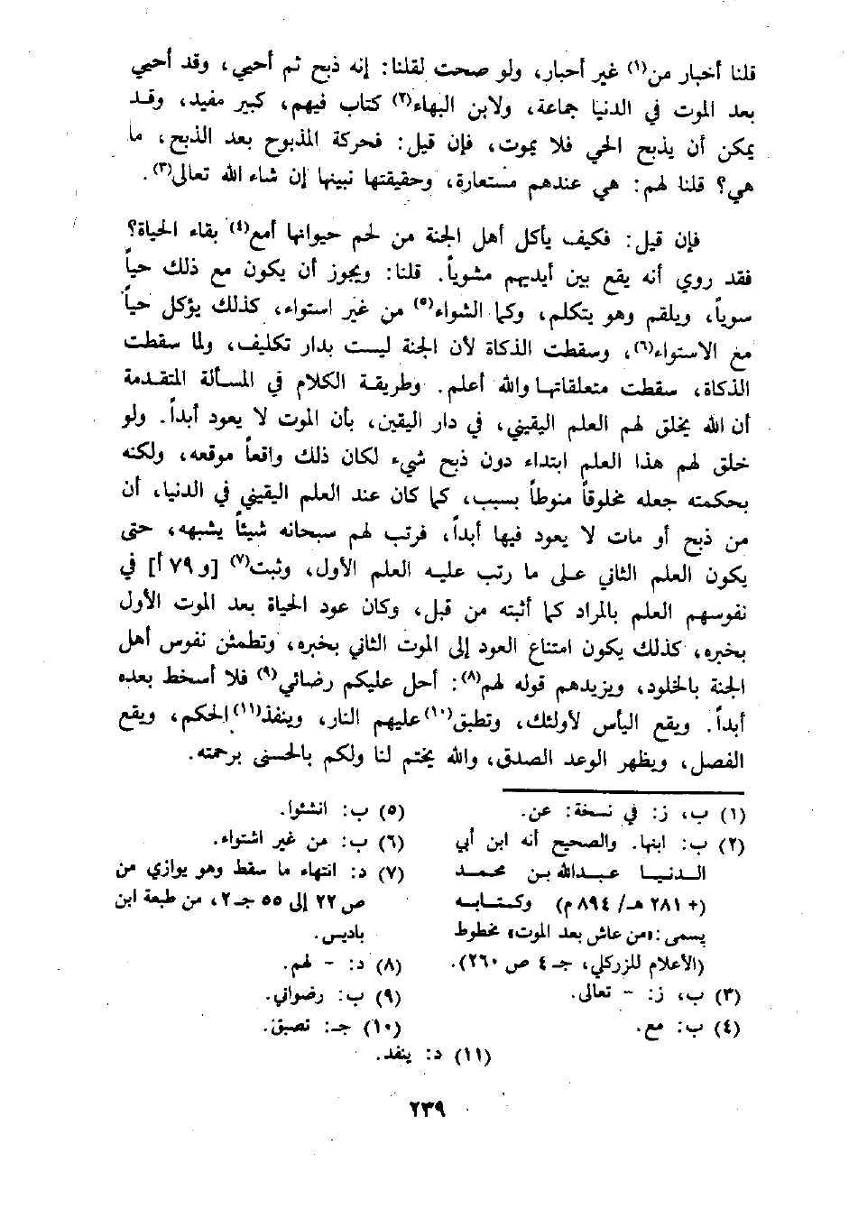 (¬2) ب: ابنها. والصحيح أنه ابن أبي الدنيا عبد الله بن محمد (+281 م/894م) وكتابه يسمى "من عاش بعد الموت" مخطوط (الأعلام للزركلي، ج4 ص260).