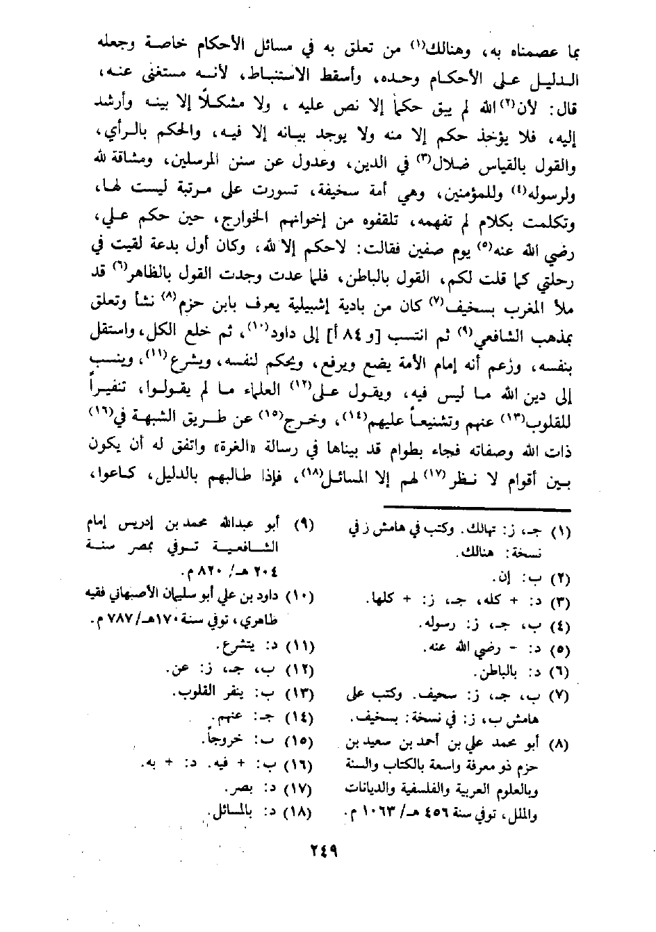 (¬8) أبو محمد علي بن أحمد بن سعيد بن حزم ذو معرفة واسعة بالكتاب والسنة وبالعلوم العربية والفلسفية والديانات والملل، توفي سنة 456 هـ/ 1563 م.