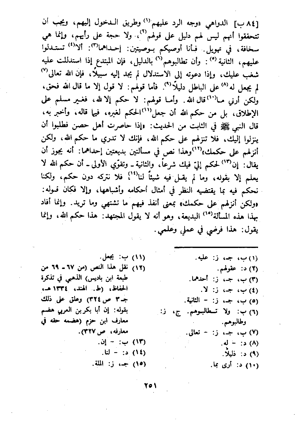 (¬12) نقل هذا النص (من 67 - 69 من طبعة ابن باديس) الذهبي في تذكرة الحفاظ، (ط. الهند، 1334 هـ، ج 3 ص 324) وعلق على ذلك بقوله: إن أبا بكر بن العربي هضم معارف ابن حزم (هضمه حقه في معارفه، ص 327).