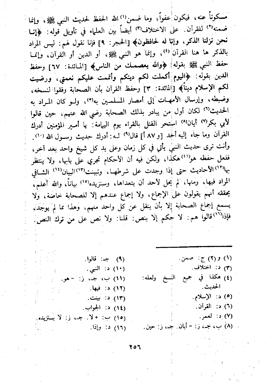 مسكوتا عنه، فيكون عفوا، وما ضمن (¬1) الله الحفظ لحديث النبي - صلى الله عليه وسلم -، وإنما ضمنه (¬2) للقرآن. على الاختلاف (¬3) أيضا بين العلماء في تأويل قوله: {إنا نحن نزلنا الذكر، وإنا له لحافظون} [الحجر: 9] فإنا نقول لهم: ليس المراد بالذكر ها هنا القرآن (¬4)، وإنما هو النبي - صلى الله عليه وسلم -، أو الدين أو القرآن، وإنما حفظ النبي - صلى الله عليه وسلم - بقوله: {والله يعصمك من الناس} المائدة: 67] وحفظ الدين بقوله: {اليوم أكملت لكم دينكم وأتممت عليكم نعمتي، ورضيت لكم الإسلام دينا} [المائدة: 3] وحفظ القرآن بأن الصحابة وفقوا لنسخه، وضبطه، وإرسال الأمهات إلى أمصار المسلمين به (¬5)، ولو كان المراد به الحديث (¬6) لكان أول من يبادر بذلك الصحابة رضي الله عنهم، حين قالوا لأبي بكر (¬7) أيان (¬8) استحر القتل بالقراء يوم اليمامة: يا أمير المؤمنين أدرك القرآن وما جاء إليه أحد [و 87 أ]، قال (¬9) له: أدرك حديث رسول الله (¬10). وأنت ترى حديث النبي يأتي في كل زمان وعلى يد كل شيخ واحد بعد آخر، فلعل حفظه هو (¬11) هكذا، ولكن فيه أن الأحكام تجري على بابها، ولا ينتظر بها (¬12) الأحاديث حتى إذا وجدت على شرطها، وتبينت (¬13) البيان (¬14) الشافي المراد فيها، ومنها، لم يحل لأحد أن يتعداها، وسنزيده (¬15) بيانا، والله أعلم، يحققه أنهم يقولون على الإجماع، ولا إجماع عندهم إلا للصحابة خاصة، ولا يسمع إجماع الصحابة إلا بأن ينقل عن كل واحد منهم، وهذا مما لم يوجد، فإذا (¬16) قالوا هم: لا حكم إلا بنص: قلنا: ولا نص على من ترك النص.