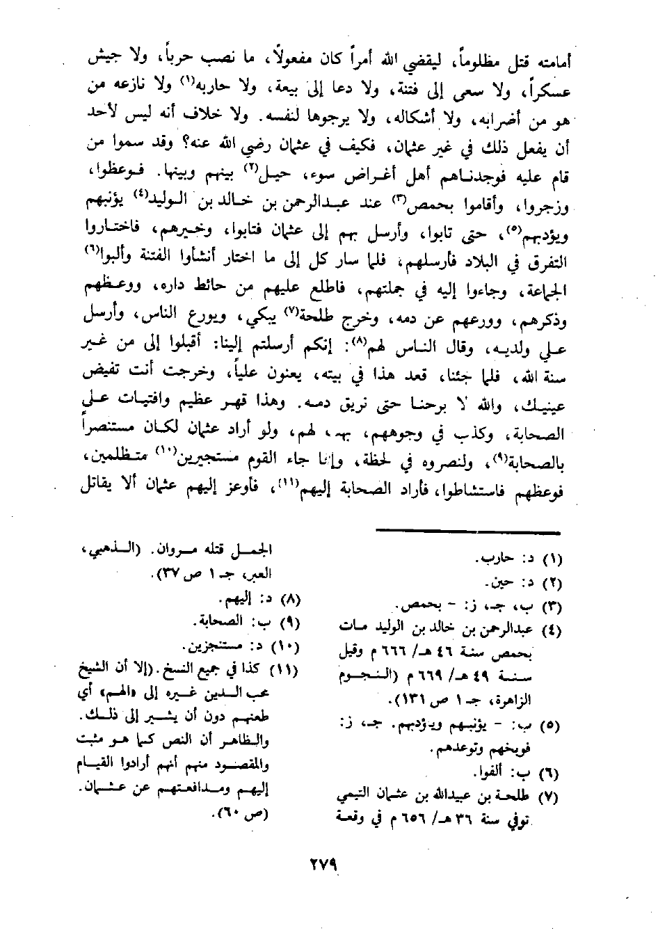 (¬11) كذا في جميع النسخ. (إلا أن الشيخ محب الدين غيره إلى "الهم" أي طعنهم دون أن يشير إلى ذلك. والظاهر أن النص كما هو مثبت والمقصود منهم أنهم أرادرا القيام إليهم ومدافعتهم عن عثمان. (ص 60).