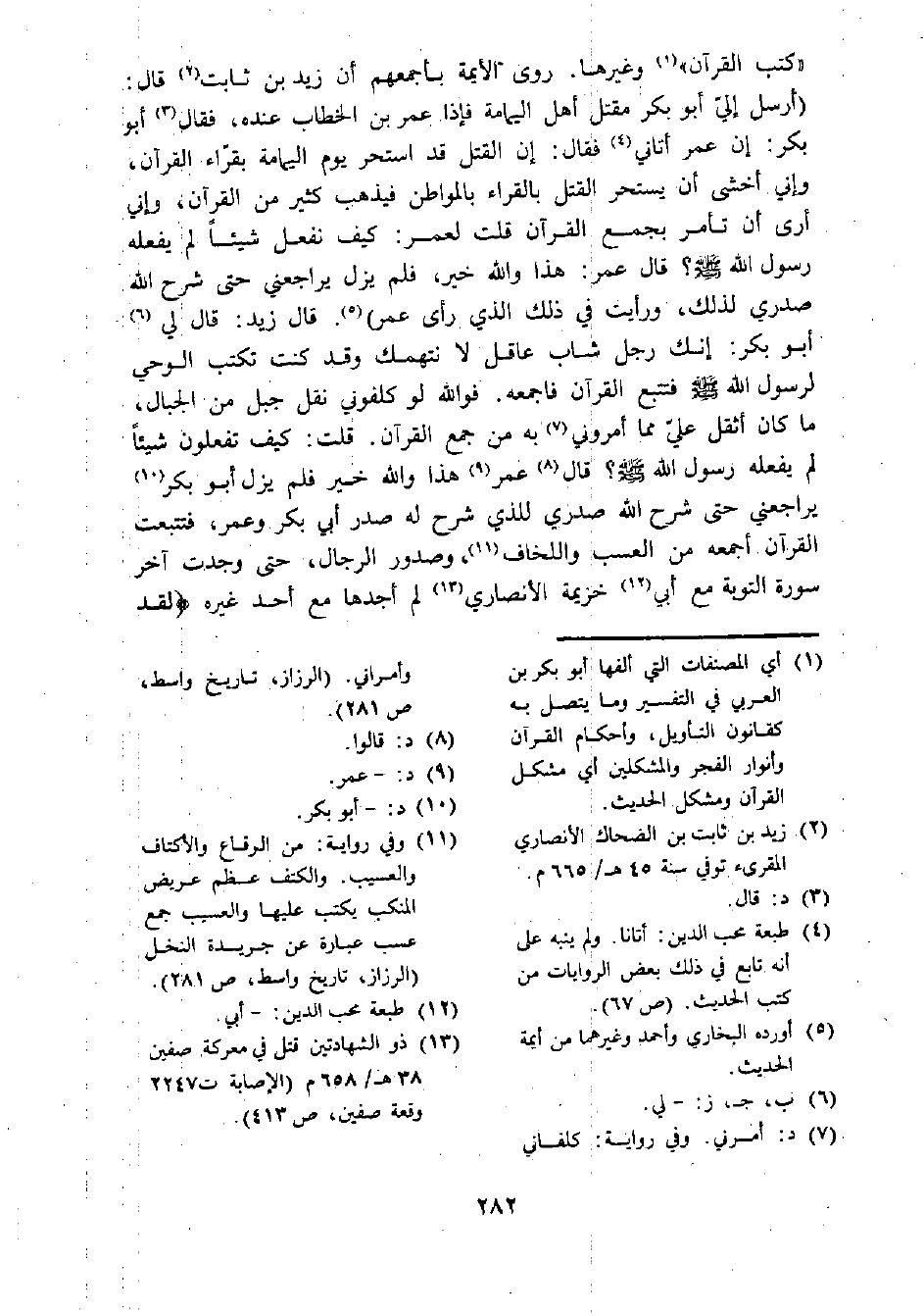 (¬11) وفي رواية: من الرقاع والأكتاف والعسيب. والكتف عظم عريض المنكب يكتب عليها والعسيب جمع عسب عبارة عن جريدة النخل (الرزاز، تاريخ واسط، ص 281).