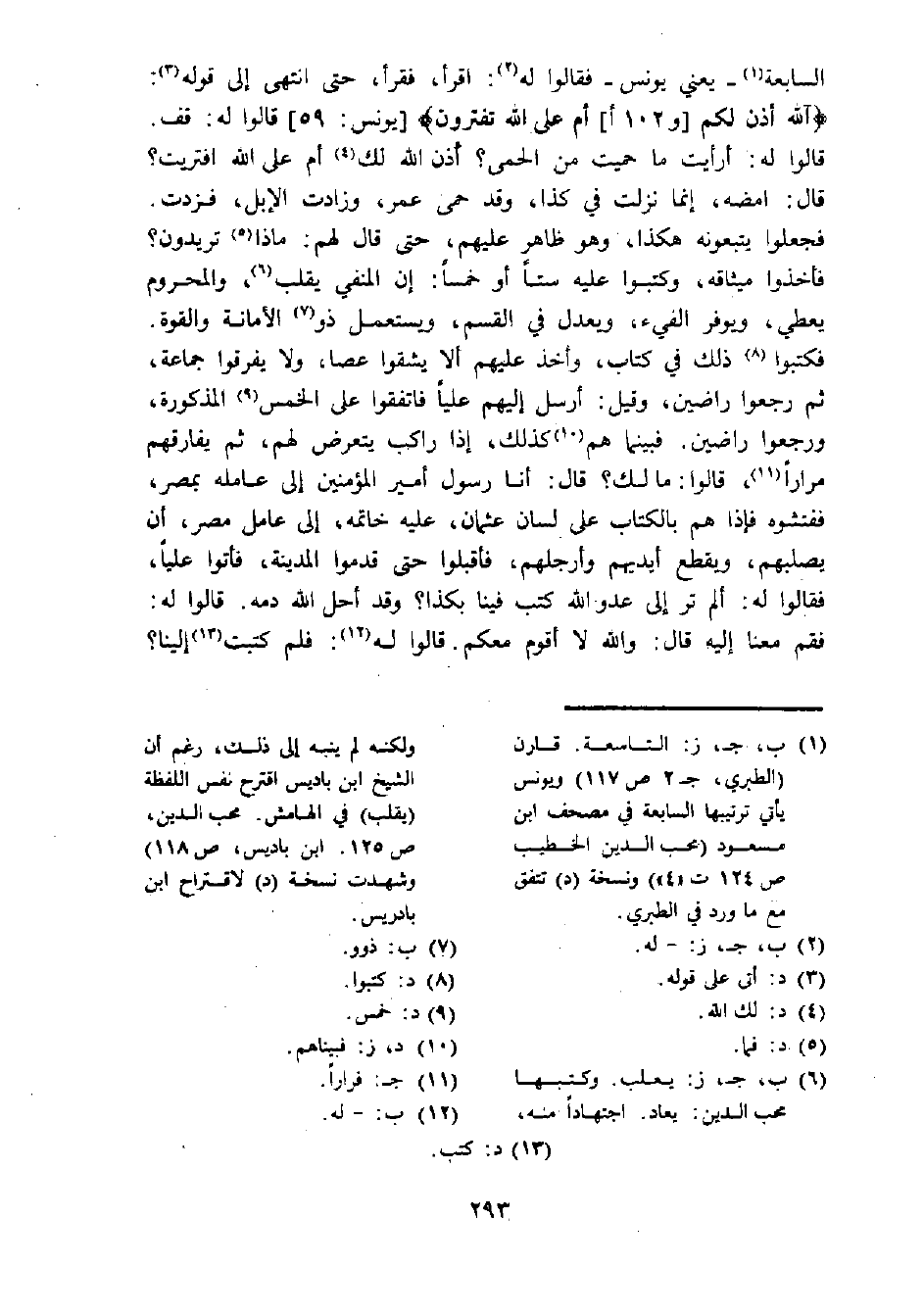 (¬1) ب، ج، ز: التاسعة. قارن (الطبري، ج2 ص117) ويونس يأتي ترتيبها السابعة في مصحف ابن مسعود (محب الدين الخطيب ص 124 ت "4" ونسخة (د) تتفق مع ما ورد في، الطبري.