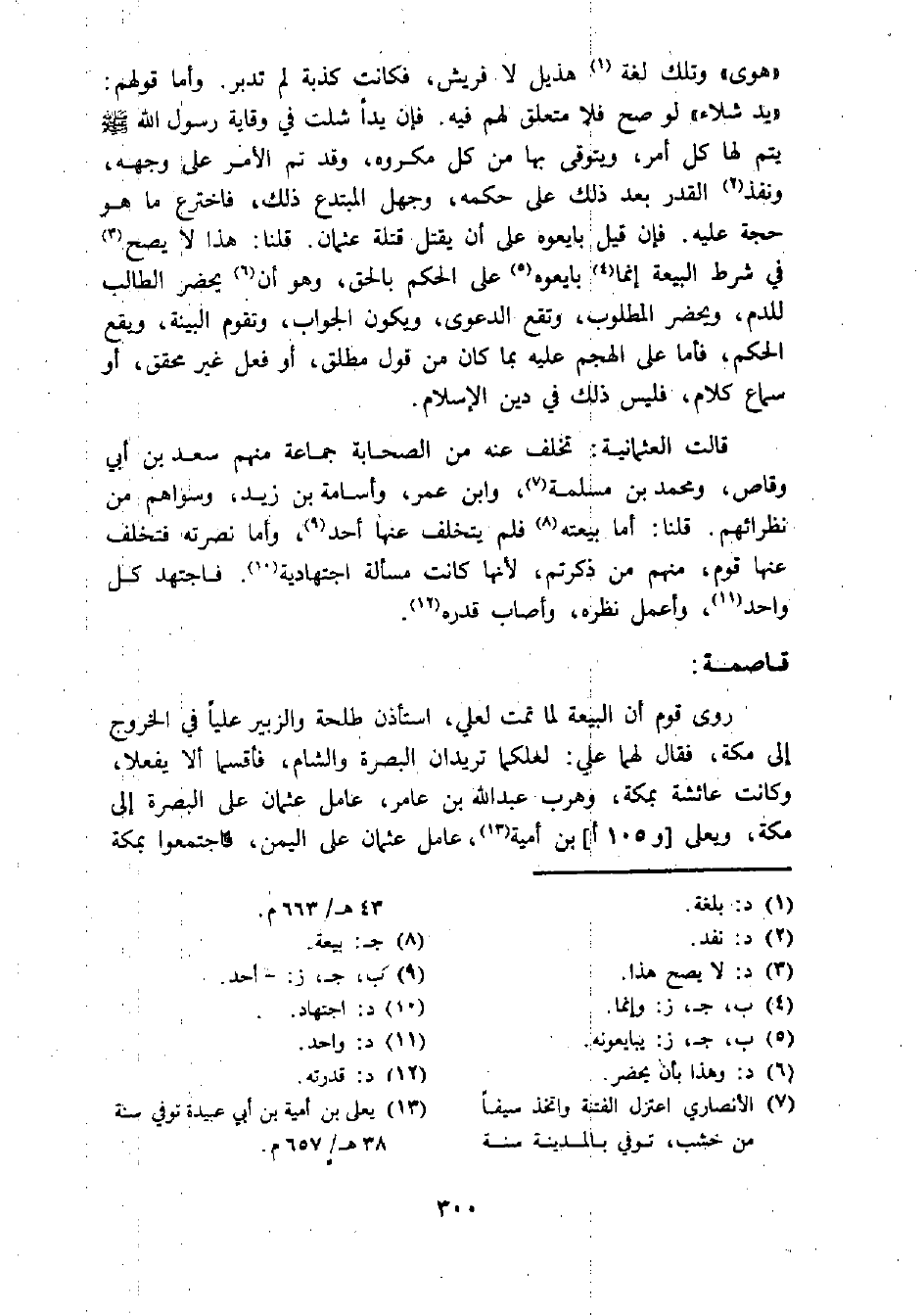 قالت العثمانية: تخلف عنه من الصحابة جماعة منهم سعد بن أبي وقاص، ومحمد بن مسلمة (¬7)، وابن عمر، وأسامة بن زيد، وسواهم من نظرائهم. قلنا: أما بيعته (¬8) فلم يتخلف عنها أحد (¬9)، وأما نصرته فتخلف عنها قوم، منهم من ذكرتم، لأنها كانت مسألة اجتهادية (¬10). فاجتهد كل واحد (¬11)، وأعمل نظره، وأصاب قدره (¬12).