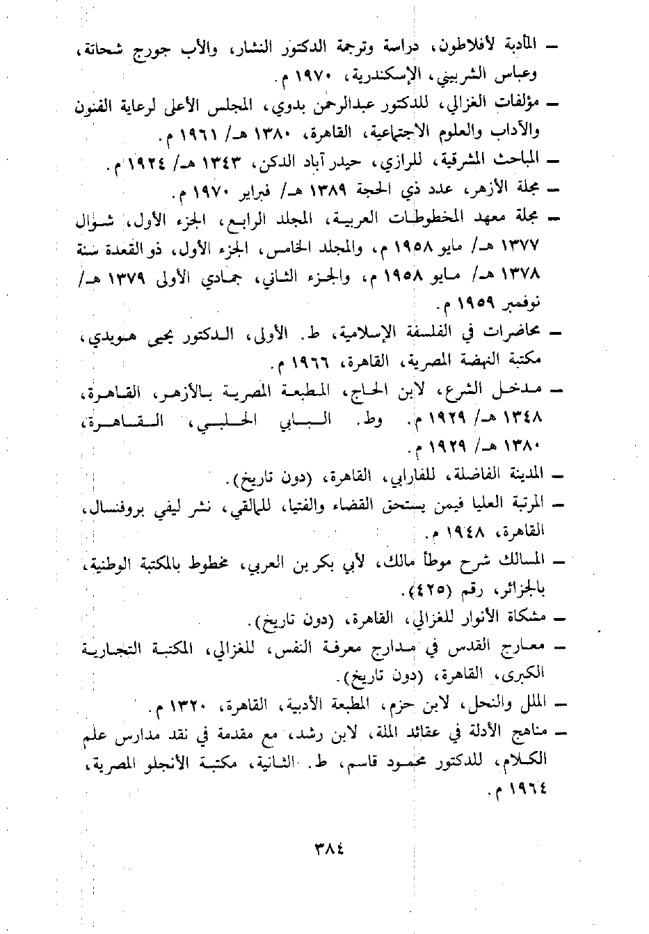 - محاضرات في الفلسفة الإسلامية، ط. الأولى، الدكتور يحيى هويدي، مكتبة النهضة المصرية، القاهرة، 1966 م.