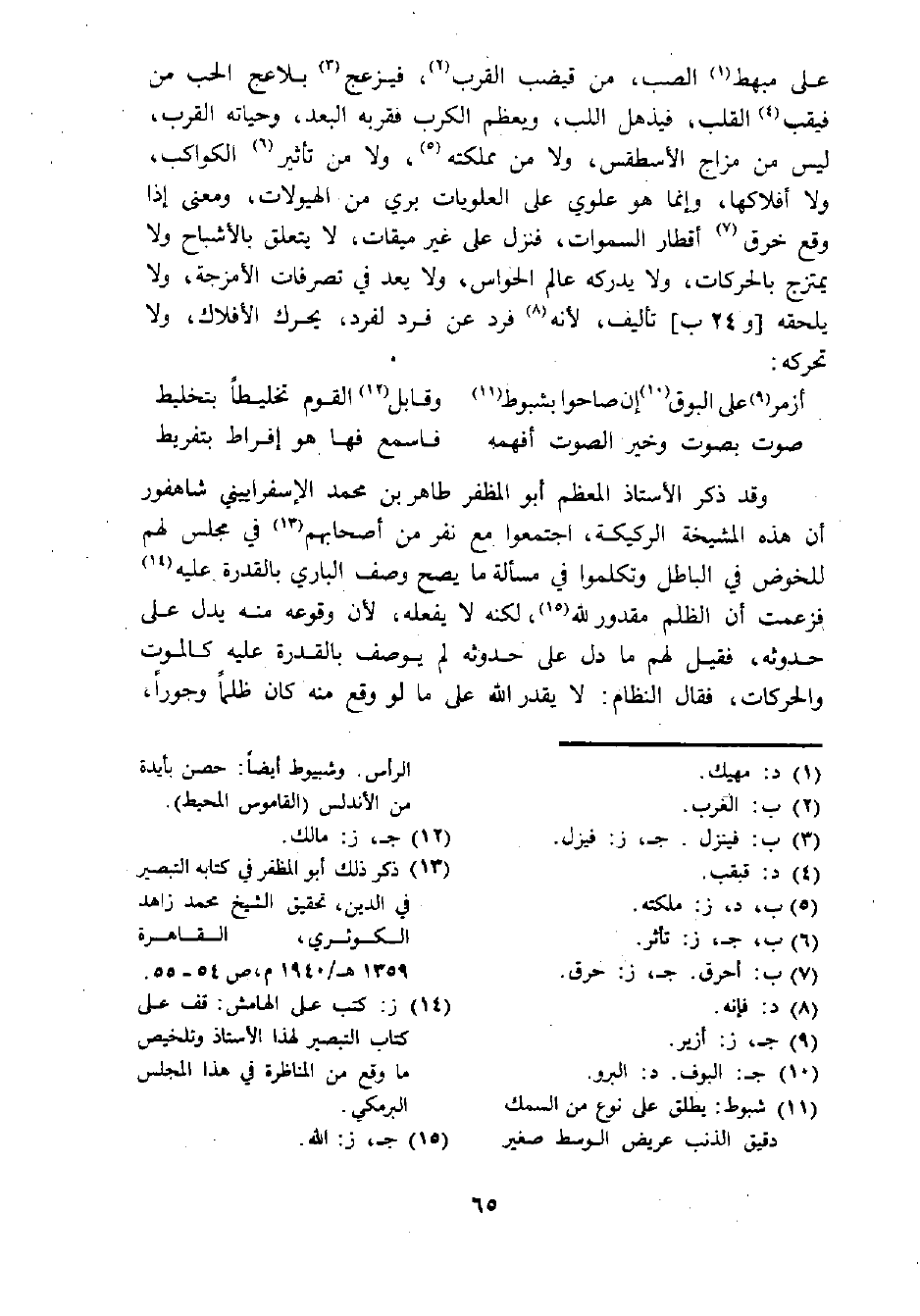 (¬14) ز: كتب على الهامش: قف على كتاب التبصير لهذا الأستاذ وتلخيص ما وقع من المناظرة في هذا المجلس البرمكي.