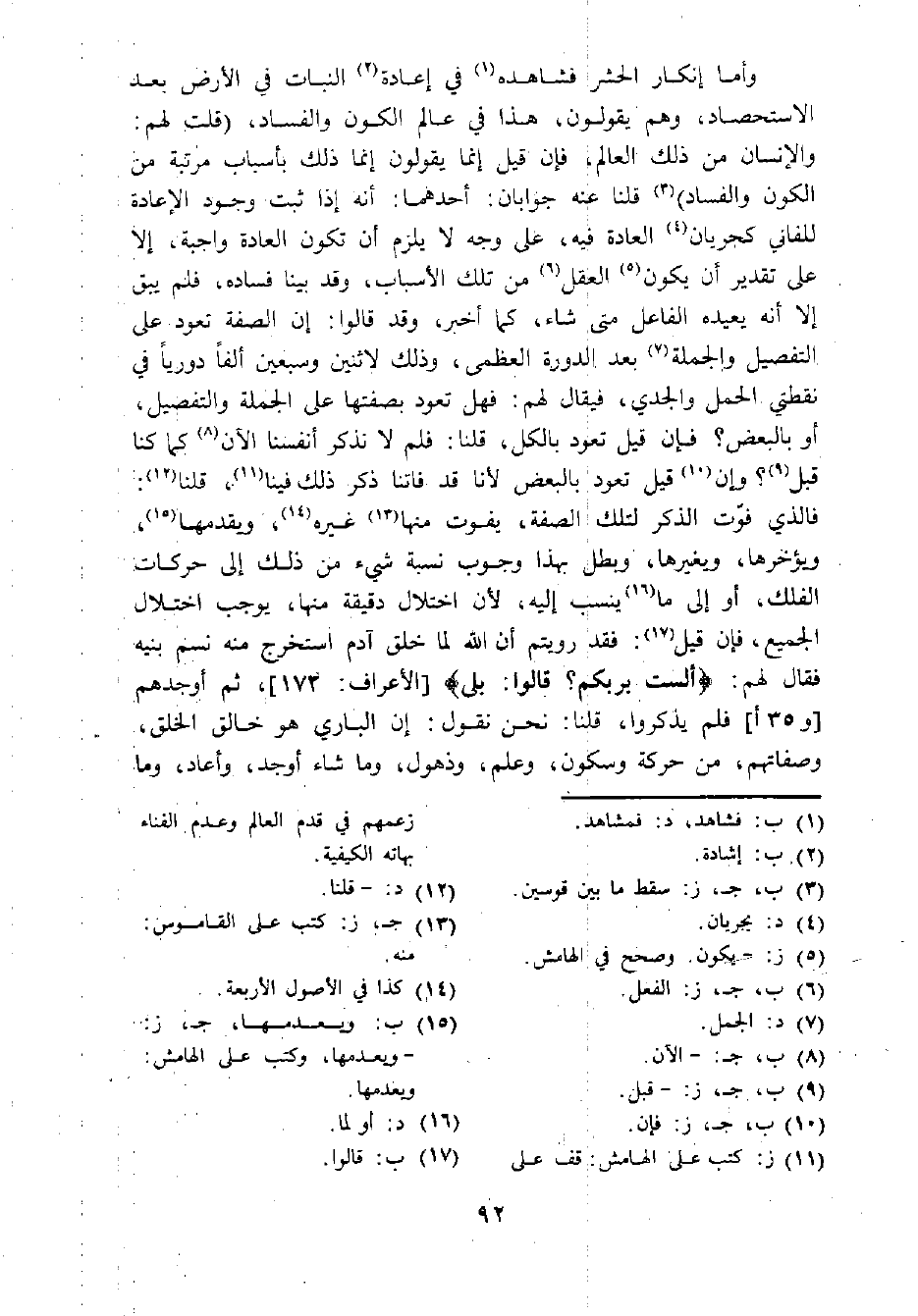 (¬11) ز: كتب على الهامش: قف على زعمهم في قدم العالم وعدم الفناء بهاته الكيفية.