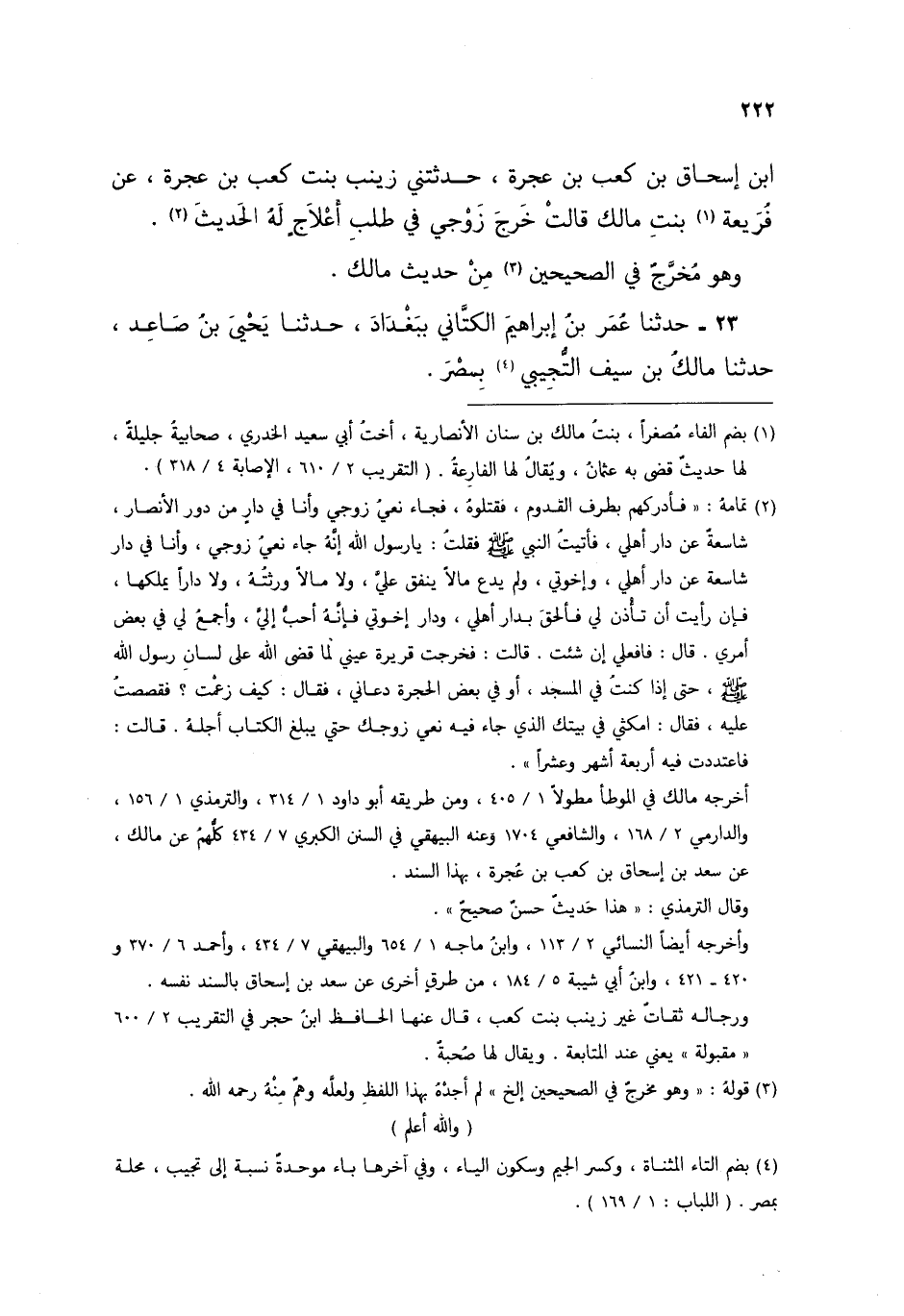 23 - حَدَّثَنَا عُمَرُ بْنُ إِبْرَاهِيمَ الْكِتَّانِيُّ، بِبَغْدَادَ , حَدَّثَنَا يَحْيَى بْنُ صَاعِدٍ، حَدَّثَنَا مَالِكُ بْنُ سَيْفِ التُّجِيبِيُّ، بِمِصْرَ ح -[223]-: وَحَدَّثَنَا جَدِّي مُحَمَّدُ بْنُ عَلِيِّ بْنِ عُمَرَ، وَابْنُ عَلْقَمَةَ، قَالَا: حَدَّثَنَا ابْنُ أَبِي حَاتِمٍ الرَّازِيُّ، حَدَّثَنَا مَالِكُ بْنُ سَيْفٍ الْمِصْرِيُّ، بِمِصْرَ , حَدَّثَنَا إِسْحَاقُ بْنُ بَكْرِ بْنِ مُضَرٍ، حَدَّثَنِي أَبِي عَنْ يَزِيدَ بْنِ عَبْدِ اللَّهِ بْنِ الْهَادِ، عَنْ مَالِكِ بْنِ أَنَسٍ، عَنْ نَافِعٍ، عَنِ ابْنِ عُمَرَ، قَالَ: قَالَ رَسُولُ اللَّهِ صَلَّى اللهُ عَلَيْهِ وَسَلَّمَ: §«لَا يَحْلِبَنَّ أَحَدُكُمْ مَاشِيَةَ أَخِيهِ إِلَّا بِإِذْنِهِ , أَيُحِبُّ أَحَدُكُمْ أَنْ تُؤْتَى خِزَانَتُهُ , فَيُكْسَرَ بَابُهُ , وَيُنْتَثَلُ مَا فِيهِ؟ إِنَّمَا ضُرُوعُ مَوَاشِي أَحَدِكُمْ خِزَانَتُهُ» تَفَرَّدَ بِهِ إِسْحَاقُ بْنُ بَكْرٍ , عَنْ أَبِيهِ , وَهُمَا ثِقَتَانِ , وَابْنُ الْهَادِ أُسْتَاذُ مَالِكٍ , كَبِيرٌ , مِنَ التَّابِعِينَ