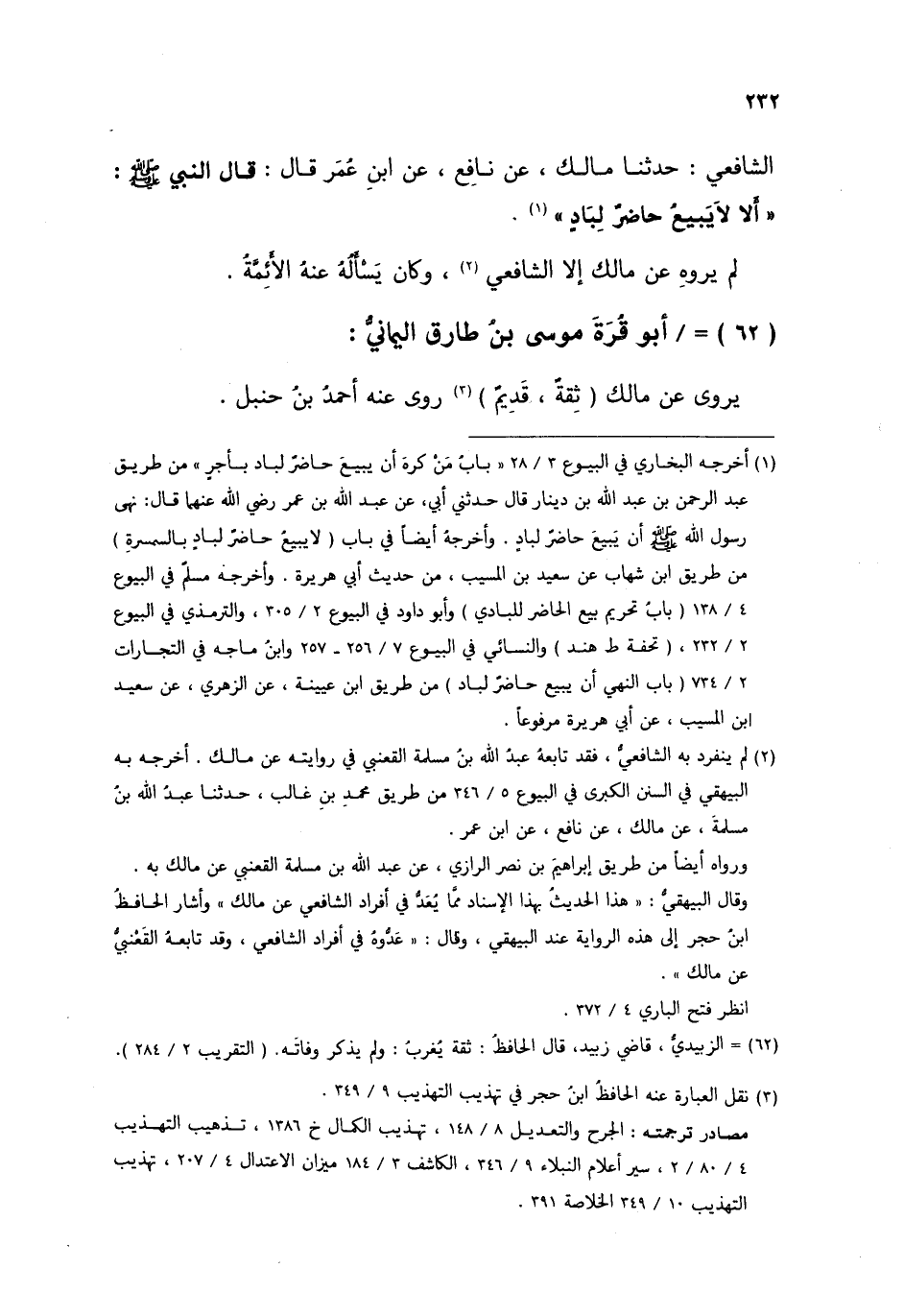 §أَبُو قُرَّةَ مُوسَى بْنُ طَارِقٍ الْيَمَانِيُّ يَرْوِي عَنْ مَالِكٍ ثِقَةٌ , قَدِيمٌ , رَوَى عَنْهُ أَحْمَدُ بْنُ حَنْبَلٍ