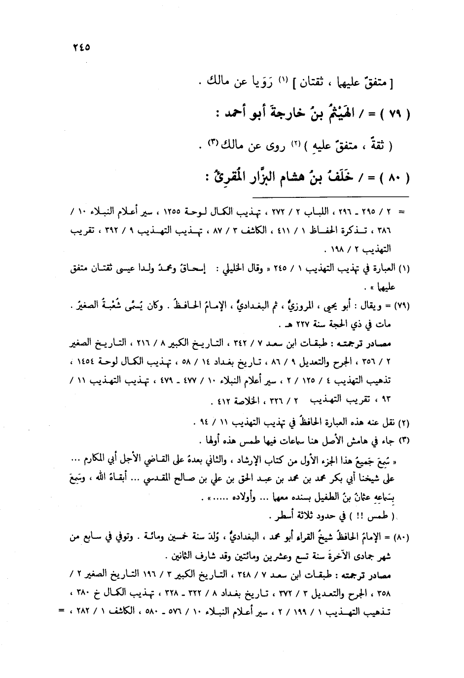 §خَلَفُ بْنَ هِشَامٍ الْبَزَّارُ الْمُقْرِئُ -[246]- ثِقَةٌ , مُتَّفَقٌ عَلَيْهِ