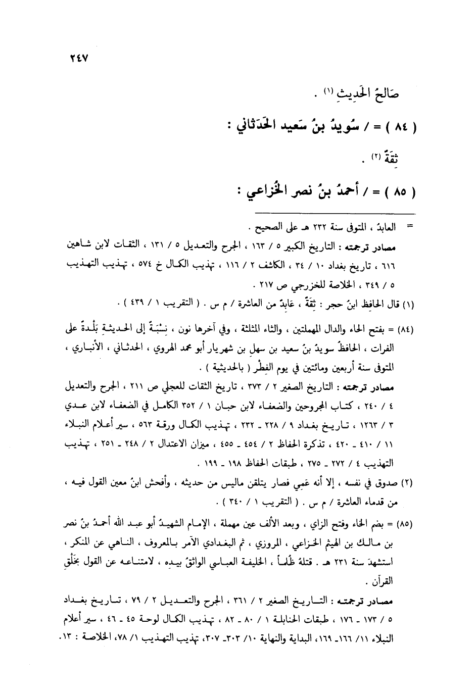 §سُوَيْدُ بْنُ سَعِيدٍ الْحَدَثَانِيُّ ثِقَةٌ
