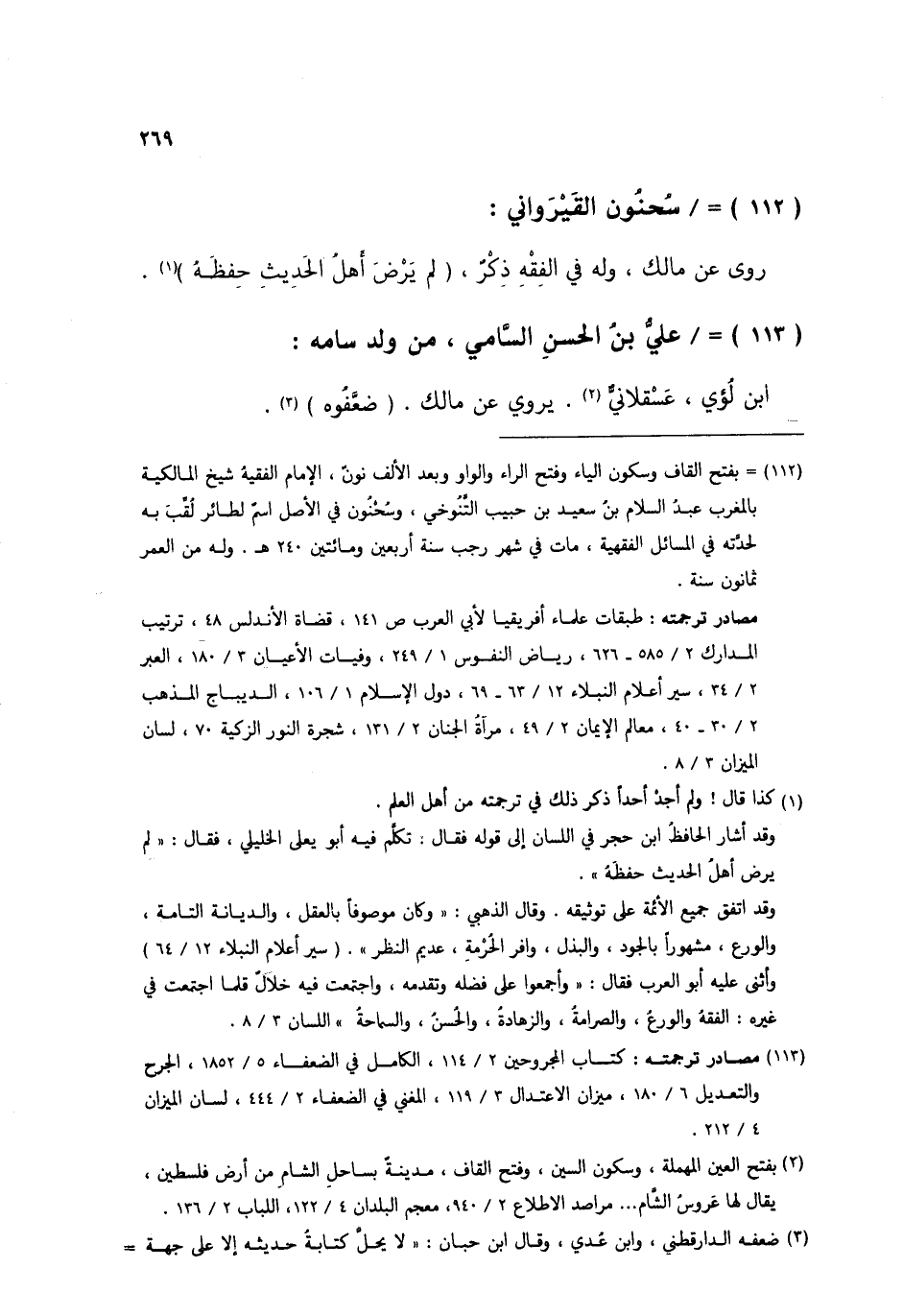 §سُحْنُونُ الْقَيْرَوَانِيُّ رَوَى عَنْ مَالِكٍ وَلَهُ فِي الْفِقْهِ ذِكْرٌ , لَمْ يَرْضَ أَهْلُ الْحَدِيثِ حِفْظَهُ