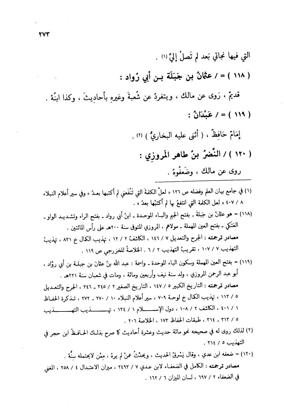 §عُثْمَانُ بْنُ جَبَلَةَ بْنِ أَبِي رَوَّادٍ قَدِيمٌ , رَوَى عَنْ مَالِكٍ وَيَتَفَرَّدُ عَنْ شُعْبَةَ وَغَيْرِهِ بِأَحَادِيثَ , وَكَذَا ابْنُهُ: