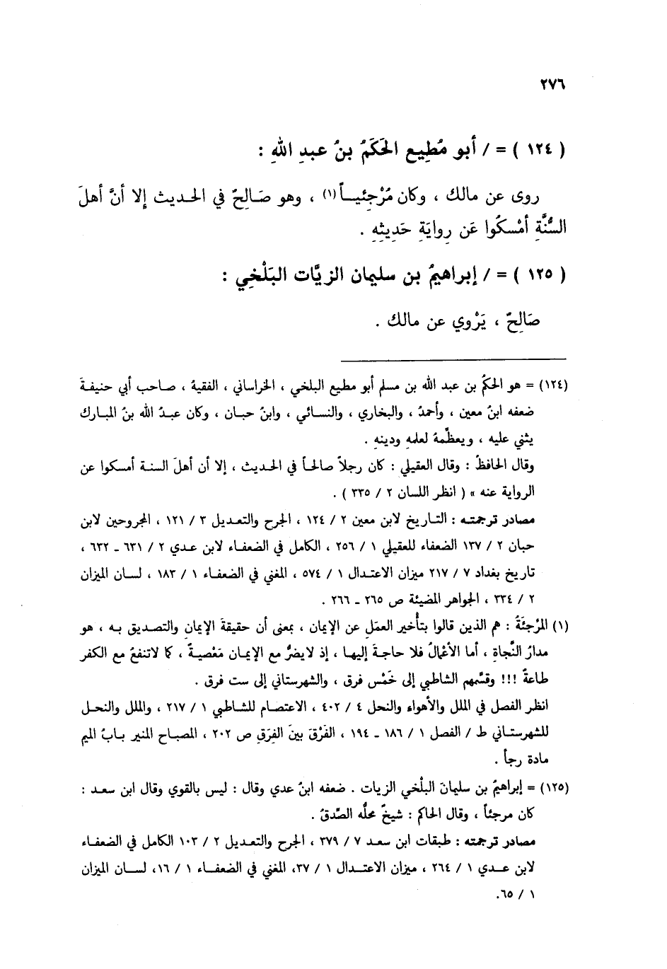 §أَبُو مُطِيعٍ الْحَكَمُ بْنُ عَبْدِ اللَّهِ رَوَى عَنْ مَالِكٍ وَكَانَ مُرْجِئِيًّا , وَهُوَ صَالِحٌ فِي الْحَدِيثِ , إِلَّا أَنَّ أَهْلَ السُّنَّةِ أَمْسَكُوا عَنْ رِوَايَةِ حَدِيثِهِ