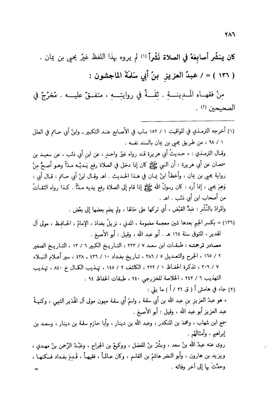 §عَبْدُ الْعَزِيزِ بْنُ أَبِي سَلَمَةَ الْمَاجِشُونِ مِنْ فُقَهَاءِ الْمَدِينَةِ , ثِقَةٌ فِي رِوَايَتِهِ , مُتَّفَقٌ عَلَيْهِ , مُخَرَّجٌ فِي الصَّحِيحَيْنِ