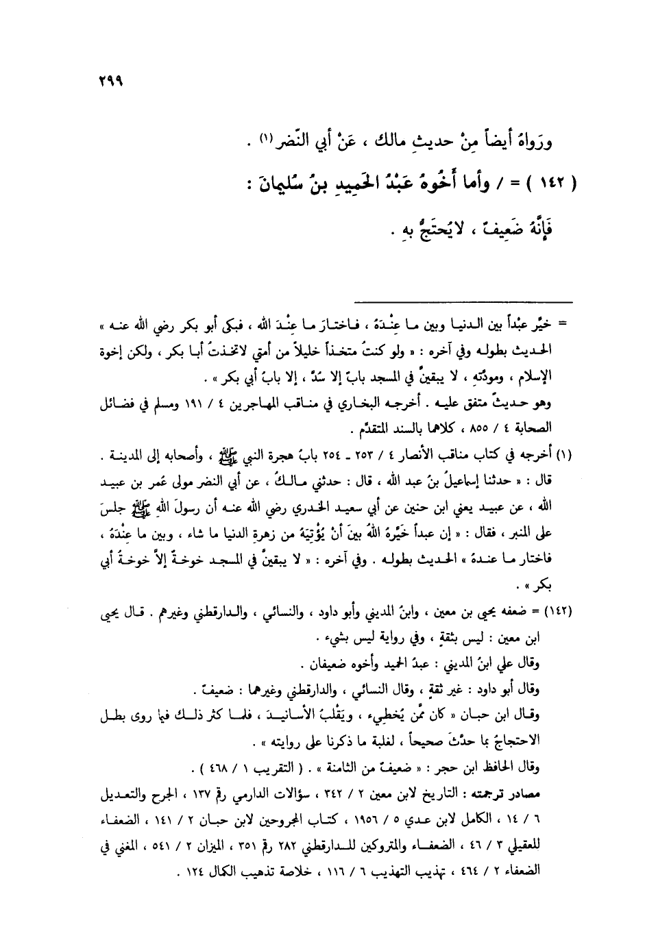 §وَأَمَّا أَخُوهُ عَبْدُ الْحَمِيدِ بْنُ سُلَيْمَانَ فَإِنَّهُ ضَعِيفٌ لَا يُحْتَجُّ بِهِ