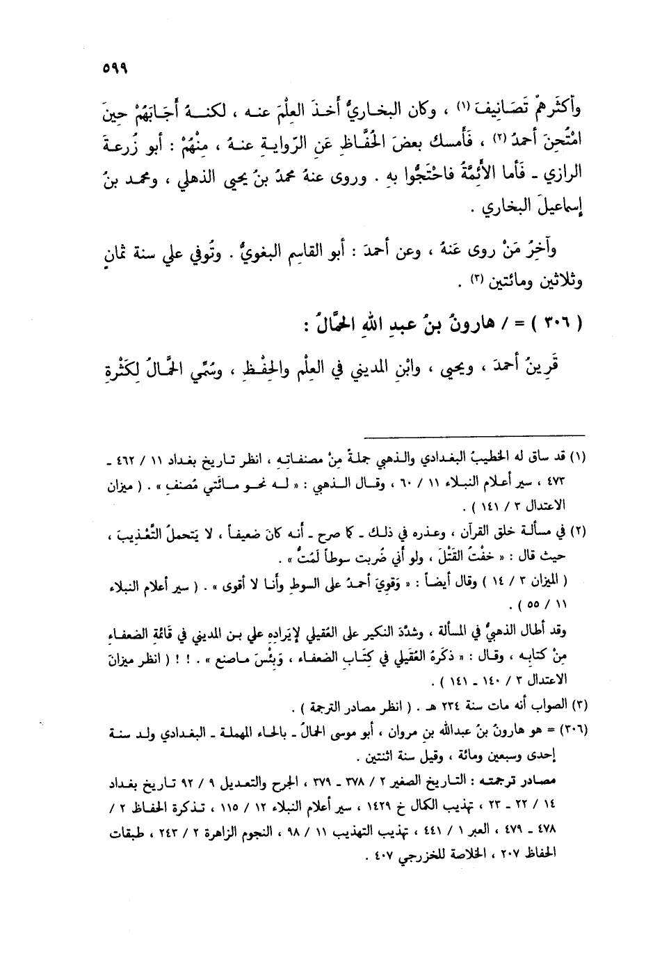 §هَارُونُ بْنُ عَبْدِ اللَّهِ الْحَمَّالُ قَرِينُ أَحْمَدَ، وَيَحْيَى، وَابْنِ الْمَدِينِيِّ، فِي الْعِلْمِ وَالْحِفْظِ وَسُمِّيَ الْحَمَّالُ لِكَثْرَةِ -[600]- عِلْمِهِ وَحِفْظِهِ رَوَى عَنْهُ الْأَئِمَّةُ تُوُفِّيَ بَعْدَ الْأَرْبَعِينَ وَمِائَتَيْنِ