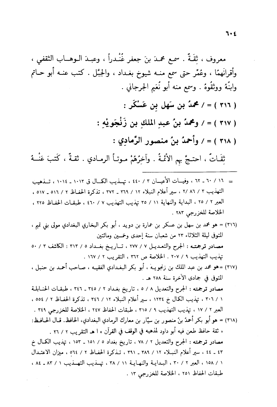 §مُحَمَّدُ بْنُ سَهْلِ بْنِ عَسْكَرٍ وَمُحَمَّدُ بْنُ عَبْدِ الْمَلِكِ بْنِ زَنْجُوَيْهِ وَأَحْمَدُ بْنُ مَنْصُورٍ الرَّمَادِيُّ ثِقَاتٌ احْتَجَّ بِهِمُ الْأَئِمَّةُ، وَآخِرُهُمْ مَوْتًا الرَّمَادِيُّ، ثِقَةٌ كَتَبَ عَنْهُ -[605]- الْبَغَوِيُّ، وَابْنُ صَاعِدٍ، وَأَبُو الْعَبَّاسِ بْنُ سُرَيْجٍ، وَالْمَحَامِلِيَّانِ، وَآخِرُ مَنْ رَوَى عَنْهُ مِنَ الثِّقَاتِ إِسْمَاعِيلُ الصَّفَّارُ، وَسَمِعَ شُيُوخَ الْبَصْرَةِ، وَبَغْدَادَ، وَالْكُوفَةِ، مَاتَ سَنَةَ أَرْبَعٍ وَسِتِّينَ وَمِائَتَيْنِ