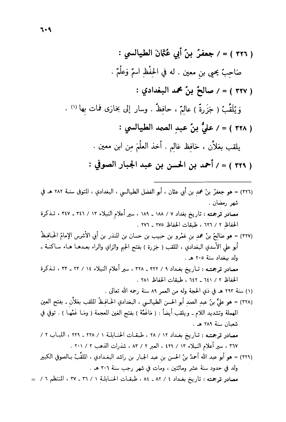 §عَلِيُّ بْنُ عَبْدِ الصَّمَدِ الطَّيَالِسِيُّ يُلَقَّبُ بَعَلَّانَ حَافِظٌ عَالِمٌ أَخَذَ الْعِلْمَ مِنَ ابْنِ مَعِينٍ