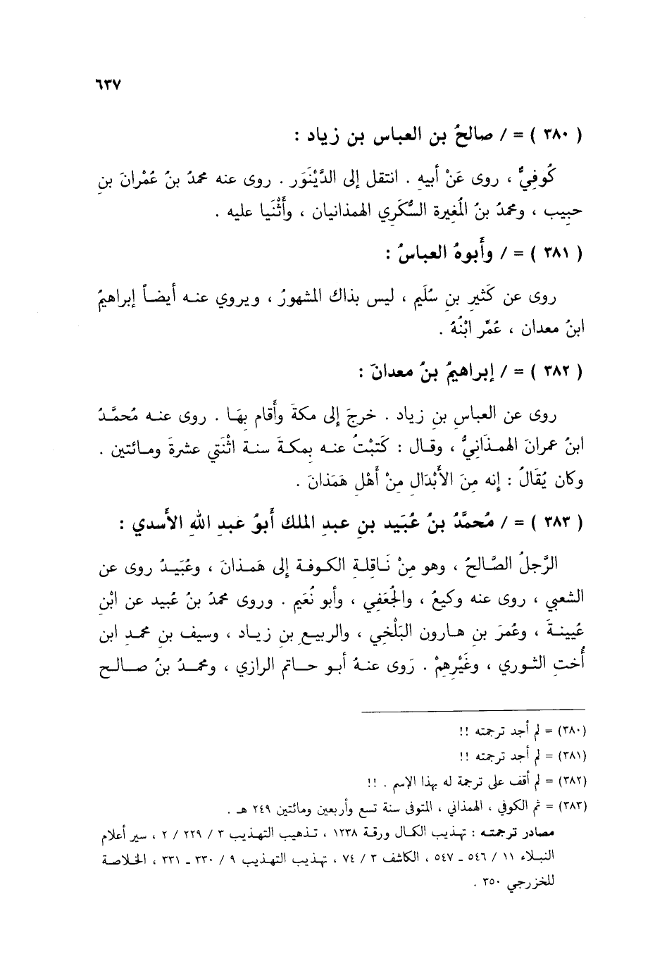 §صَالِحُ بْنُ الْعَبَّاسِ بْنِ زِيَادٍ كُوفِيٌّ، رَوَى عَنْ أَبِيهِ انْتَقَلَ إِلَى الدَّيْنَوَرِ، رَوَى عَنْهُ مُحَمَّدُ بْنُ عِمْرَانَ بْنِ حَبِيبٍ، وَمُحَمَّدُ بْنُ الْمُغِيرَةِ السُّكَّرِيُّ الْهَمَذَانِيَّانِ، وَأَثْنَيَا عَلَيْهِ