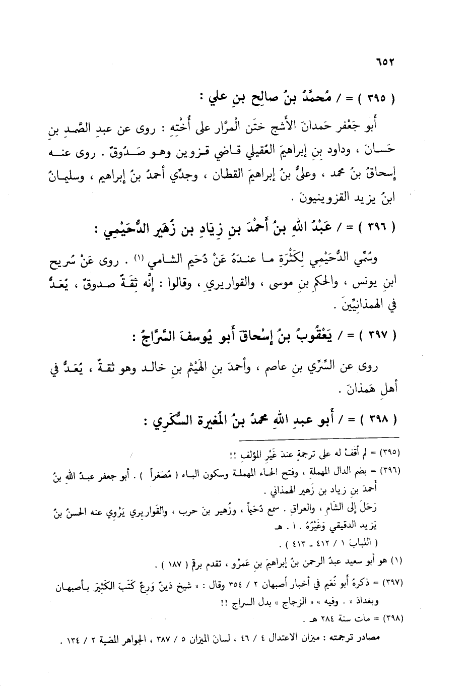 §عَبْدُ اللَّهِ بْنُ أَحْمَدَ بْنِ زِيَادِ بْنِ زُهَيْرٍ الدُّحَيْمِيُّ وَسُمِّيَ الدُّحَيْمِيَّ لِكَثْرَةِ مَا عِنْدَهُ عَنْ دُحَيْمٍ الشَّامِيِّ رَوَى عَنْ سُرَيْحِ بْنِ يُونُسَ، وَالْحَكَمِ بْنِ مُوسَى، وَالْقَوَارِيرِيِّ، وَقَالُوا: إِنَّهُ ثِقَةٌ، صَدُوقٌ، يُعَدُّ فِي الْهَمَذَانِيِّينَ