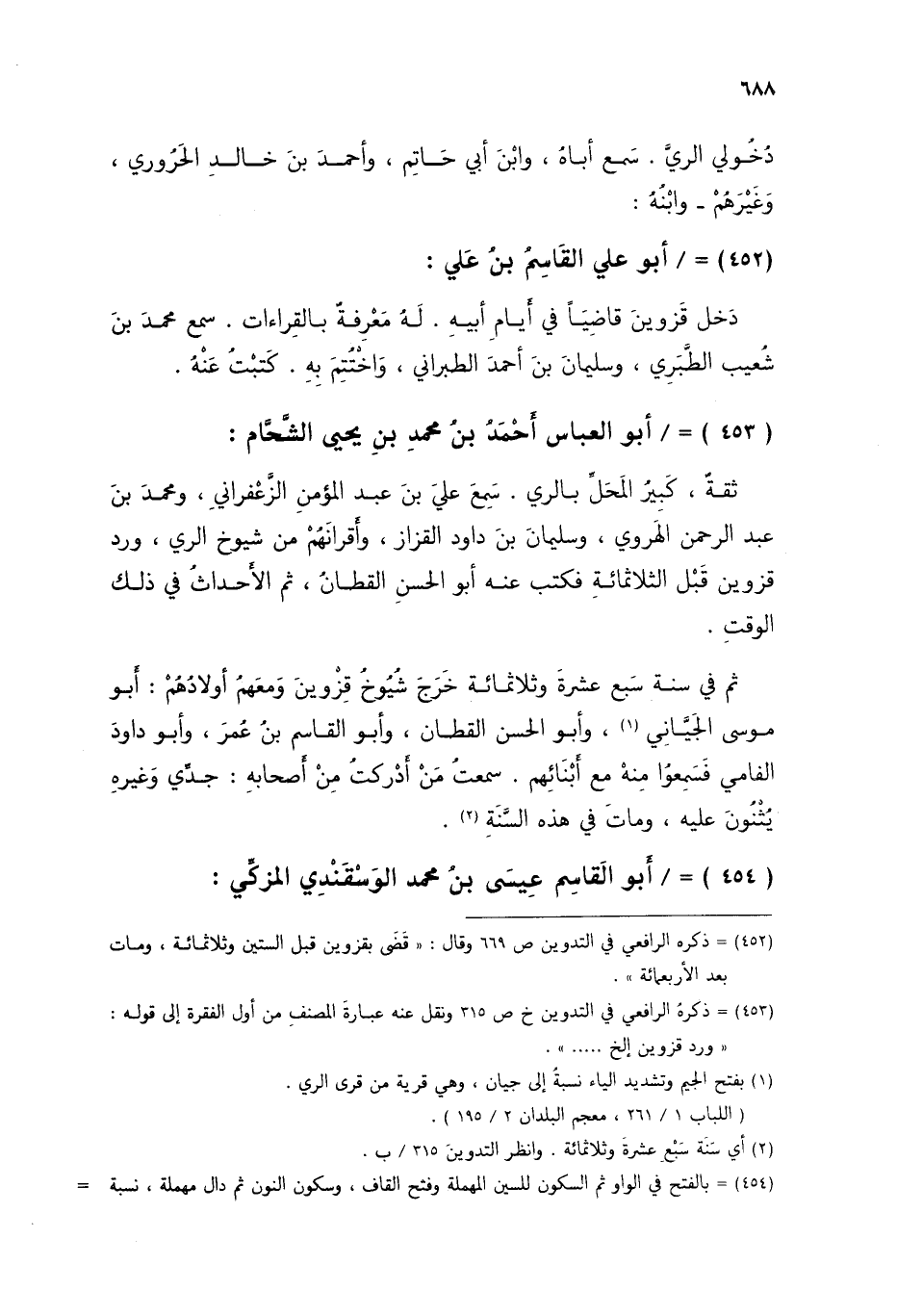 §أَبُو الْقَاسِمِ عِيسَى بْنُ مُحَمَّدٍ الْوَسْقَنْدِيُّ الْمُزَكِّي -[689]- مُتَّفَقٌ عَلَيْهِ سَمِعَ أَبَا زُرْعَةَ، وَأَبَا حَاتِمٍ، وَحَرْبَ بْنَ إِسْمَاعِيلَ الْكَرْمَانِيَّ التَّارِيخَ الْكَبِيرَ الَّذِي كَتَبَهُ عَنْ أَحْمَدَ بْنِ حَنْبَلٍ، وَارْتَحَلَ إِلَى الْعِرَاقِ، وَالشَّامِ، وَمَاتَ سَنَةَ ثَمَانِيَ عَشْرَةَ وَثَلَاثِمِائَةٍ، وَابْنُهُ