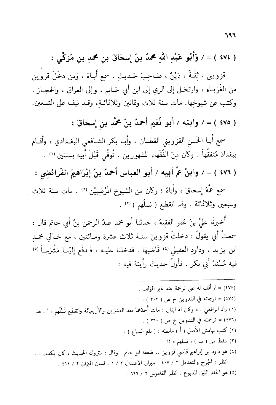 §وَأَبُو عَبْدِ اللَّهِ مُحَمَّدُ بْنُ إِسْحَاقَ بْنِ مُحَمَّدِ بْنِ مُزَكَّيٍّ قَزْوِينِيُّ، ثِقَةٌ، دَيَّنٌ، صَاحِبُ حَدِيثٍ، سَمِعَ أَبَاهُ، وَمَنْ دَخَلَ قَزْوِينَ مِنَ الْغُرَبَاءِ، وَارْتَحَلَ إِلَى الرَّيِّ إِلَى ابْنِ أَبِي حَاتِمٍ وَالَى الْعِرَاقِ، وَالْحِجَازِ، وَكَتَبَ عَنْ شُيُوخِهَا، مَاتَ سَنَةَ ثَلَاثٍ وَثَمَانِينَ وَثَلَاثِمِائَةٍ، وَقَدْ نَيَّفَ عَلَى التِّسْعِينَ