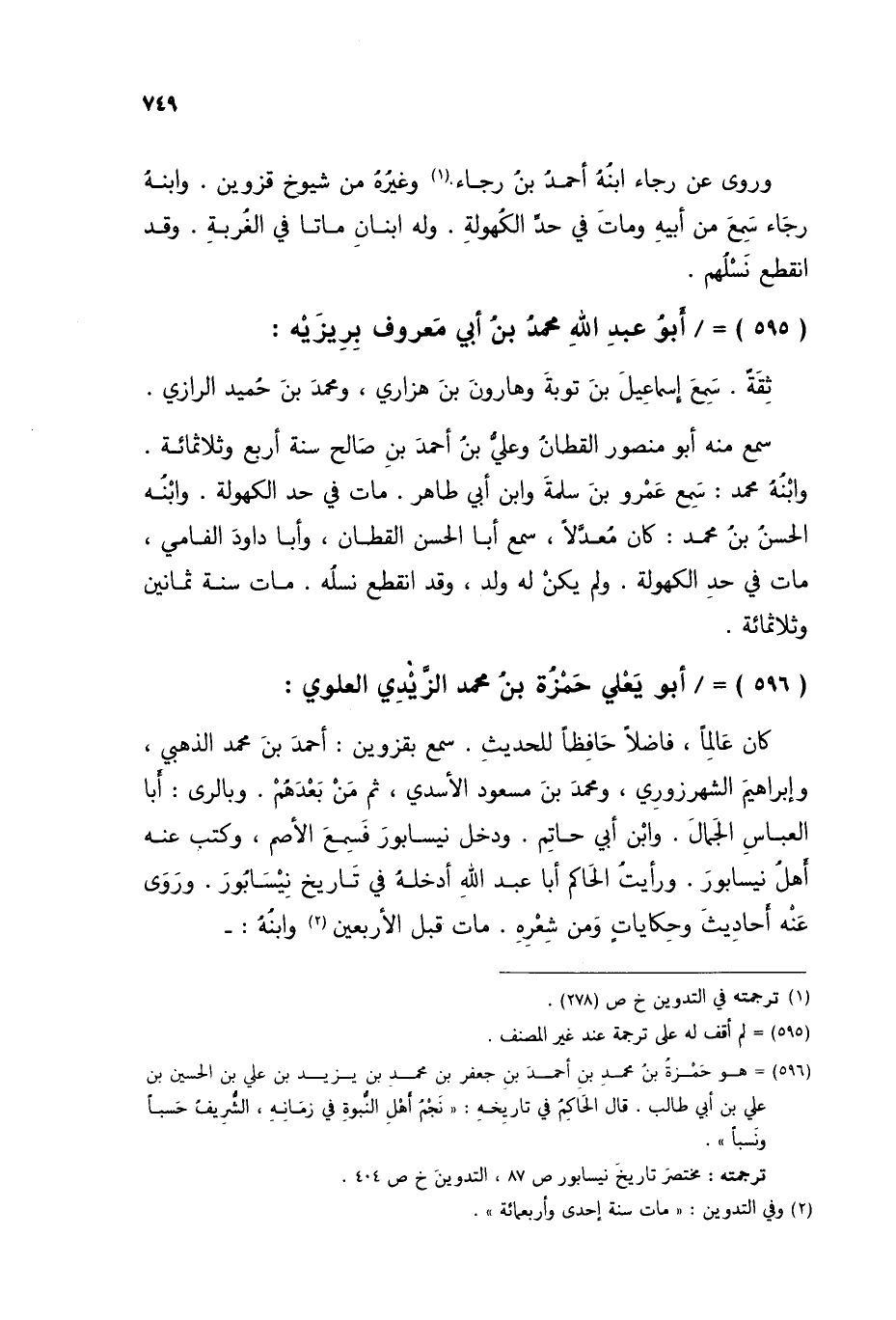 §أَبُو يَعْلَى حَمْزَةُ بْنُ مُحَمَّدٍ الزَّيْدِيُّ الْعَلَوِيُّ كَانَ عَالِمًا فَاضِلًا حَافِظًا لِلْحَدِيثِ سَمِعَ بِقَزْوِينَ أَحْمَدَ بْنَ مُحَمَّدٍ الذَّهَبِيَّ، وَإِبْرَاهِيمَ الشَّهْرَزُورِيَّ، وَمُحَمَّدَ بْنَ مَسْعُودٍ الْأَسَدِيَّ، ثُمَّ مَنْ بَعْدَهُمْ وَبِالرَّيِّ أَبَا الْعَبَّاسِ الْجَمَّالَ، وَابْنَ أَبِي حَاتِمٍ، وَدَخَلَ نَيْسَابُورَ فَسَمِعَ الْأَصَمَّ، وَكَتَبَ عَنْهُ أَهْلُ نَيْسَابُورَ وَرَأَيْتُ الْحَاكِمَ أَبَا عَبْدِ اللَّهِ أَدْخَلَهُ فِي تَارِيخِ نَيْسَابُورَ وَرَوَى عَنْهُ أَحَادِيثَ وَحِكَايَاتٍ وَمِنْ شَعْرِهِ مَاتَ قَبْلَ الْأَرْبَعِينَ وَابْنُهُ: