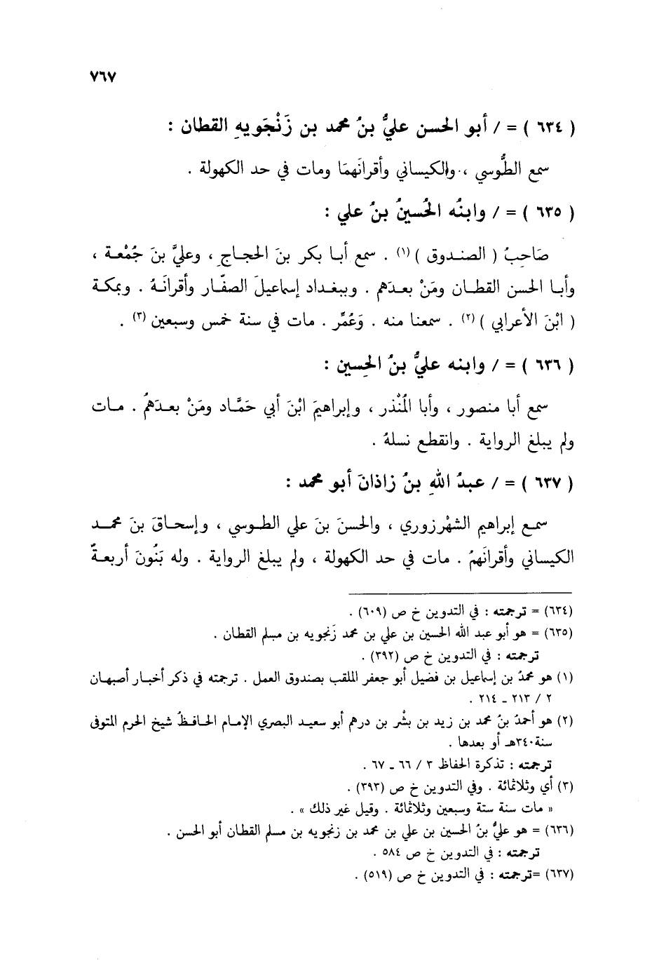§أَبُو الْحَسَنِ عَلِيُّ بْنُ مُحَمَّدِ بْنِ زَنْجُوَيْهِ الْقَطَّانُ سَمِعَ الطُّوسِيَّ، وَالْكَيْسَانِيَّ، وَأَقْرَانَهُمَا، وَمَاتَ فِي حَدِّ الْكُهُولَةِ