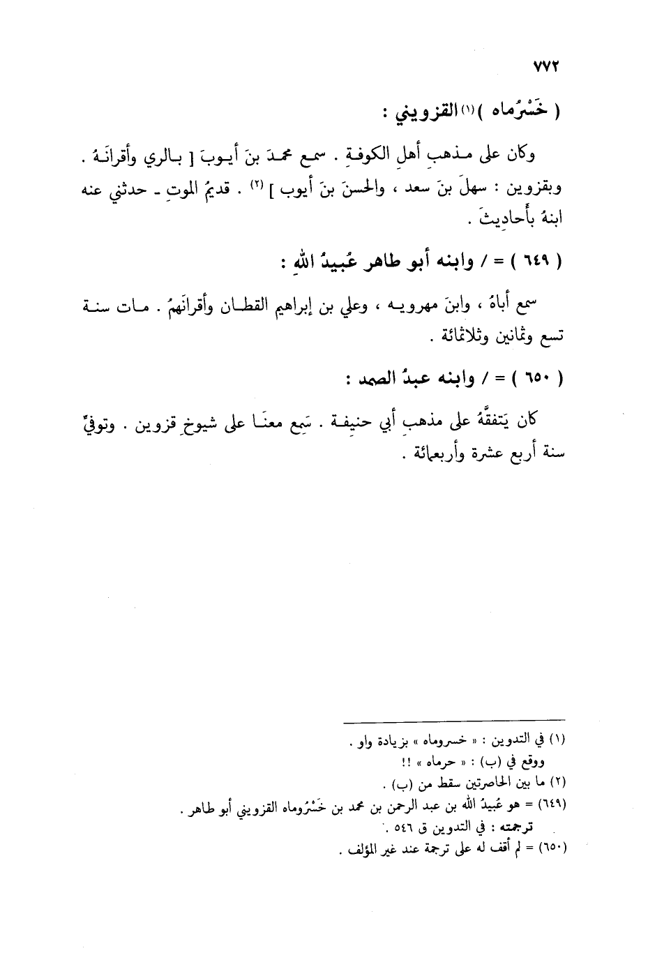 §وَابْنُهُ عَبْدُ الصَّمَدِ كَانَ يَتَفَقَّهُ عَلَى مَذْهَبِ أَبِي حَنِيفَةَ، سَمِعَ مَعَنَا عَلَى شُيُوخِ قَزْوِينَ، وَتُوُفِّيَ سَنَةَ أَرْبَعَ عَشْرَةَ وَأَرْبَعِمِائَةٍ