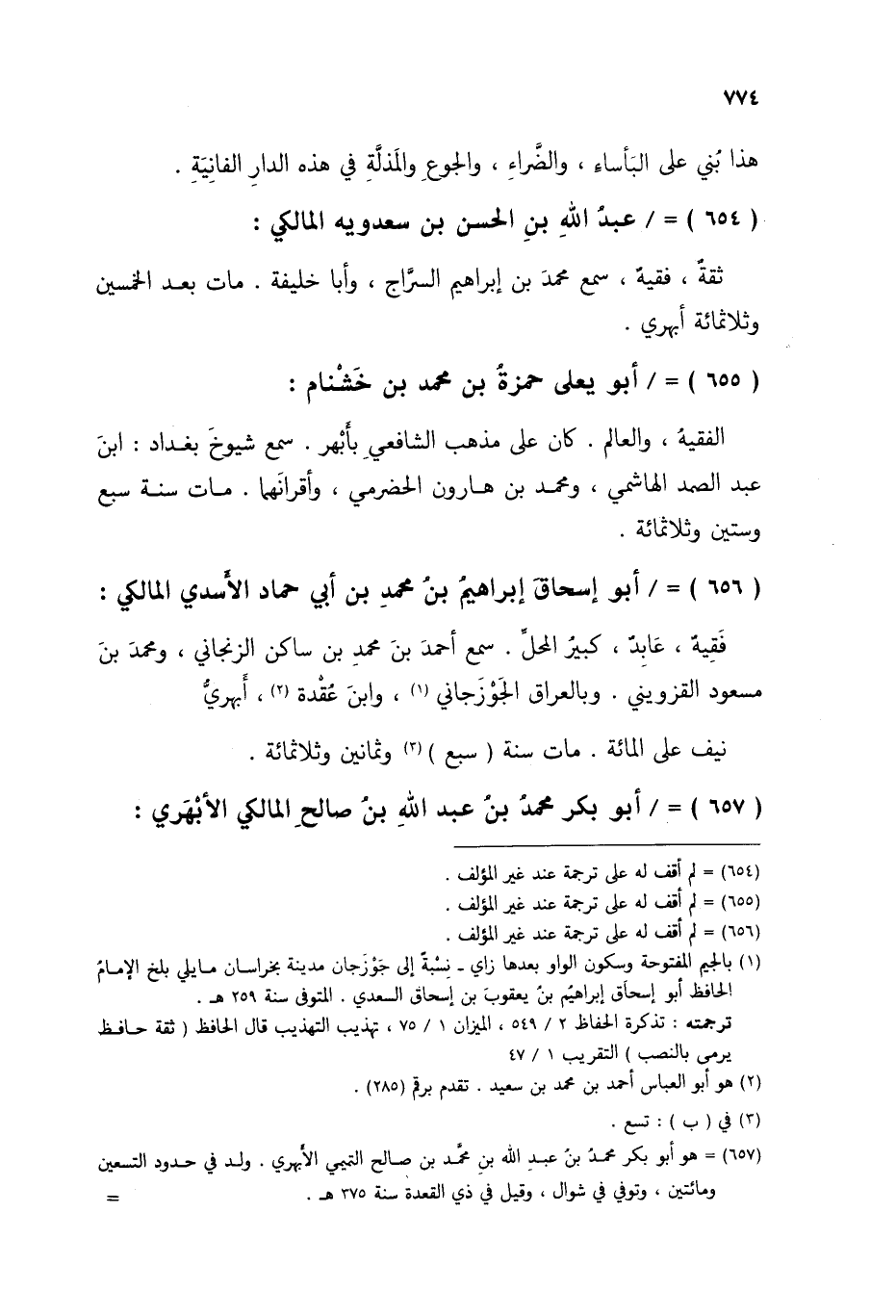 §أَبُو إِسْحَاقَ إِبْرَاهِيمُ بْنُ مُحَمَّدِ بْنِ أَبِي حَمَّادٍ الْأَسَدِيَّ الْمَالِكِيَّ فَقِيهٌ، عَابِدٌ، كَبِيرُ الْمَحَلِّ، سَمِعَ أَحْمَدَ بْنَ مُحَمَّدِ بْنِ سَاكِنٍ الزَّنْجَانِيَّ، وَمُحَمَّدَ بْنَ مَسْعُودٍ الْقَزْوِينِيَّ، وَبِالْعِرَاقِ الْجُوزَجَانِيَّ، وَابْنَ عُقْدَةَ أَبْهَرِيُّ نَيِّفَ عَلَى الْمِائَةِ مَاتَ سَنَةَ سَبْعٍ وَثَمَانِينَ وَثَلَاثِمِائَةٍ